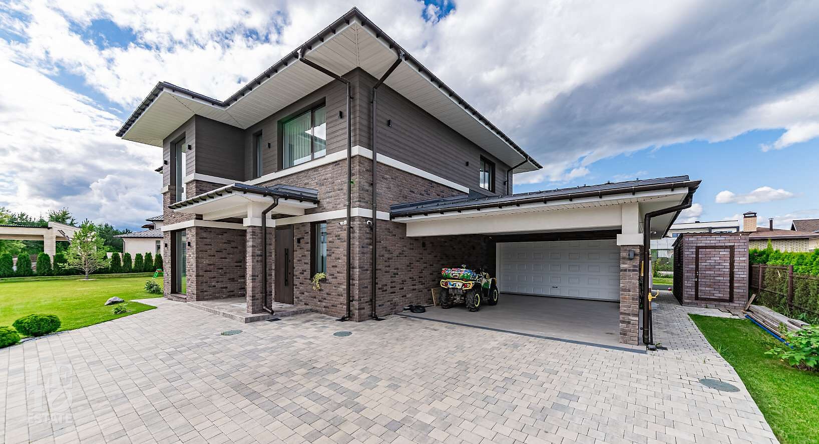 панорамными окнами и выходом на террасу, кладовая рядом с кухней, гараж на 2 автомобиля.