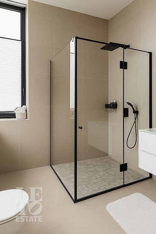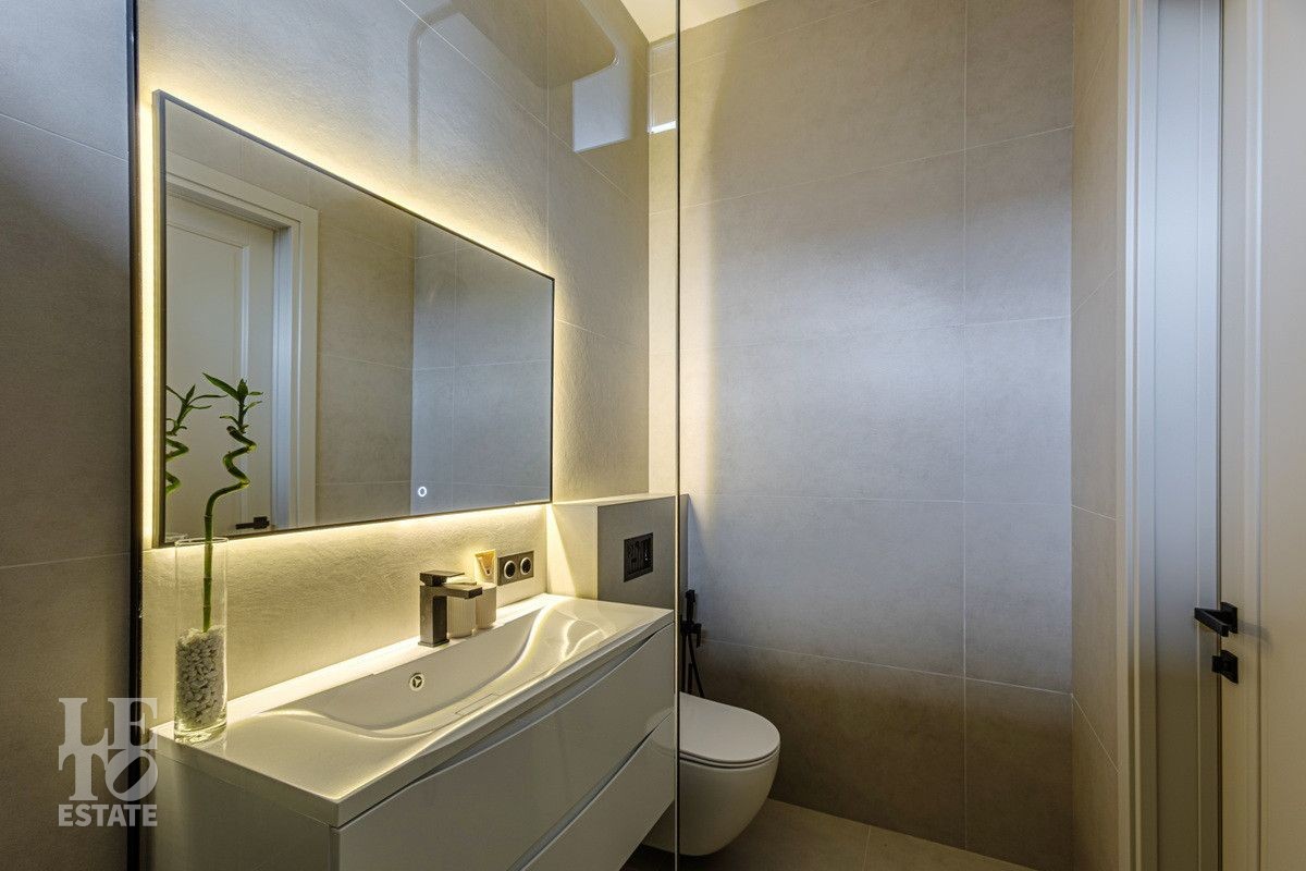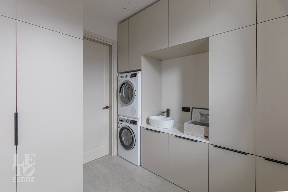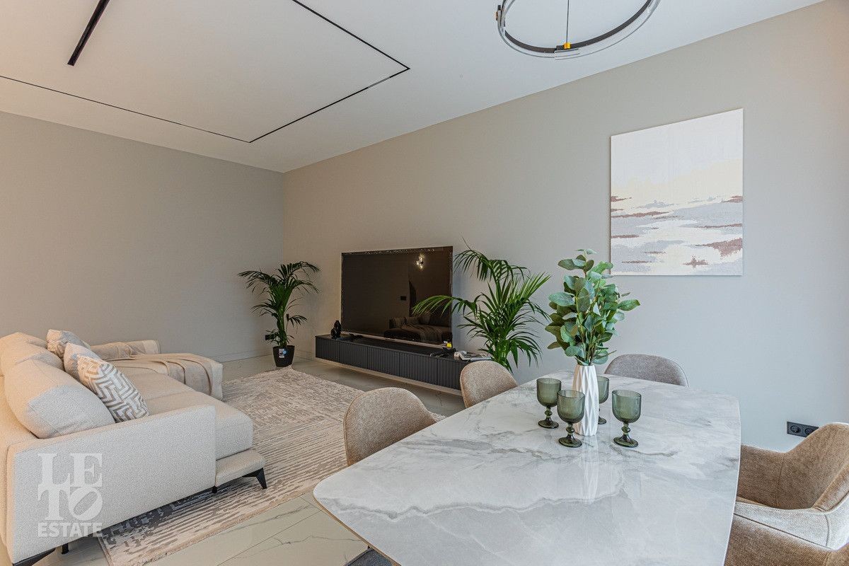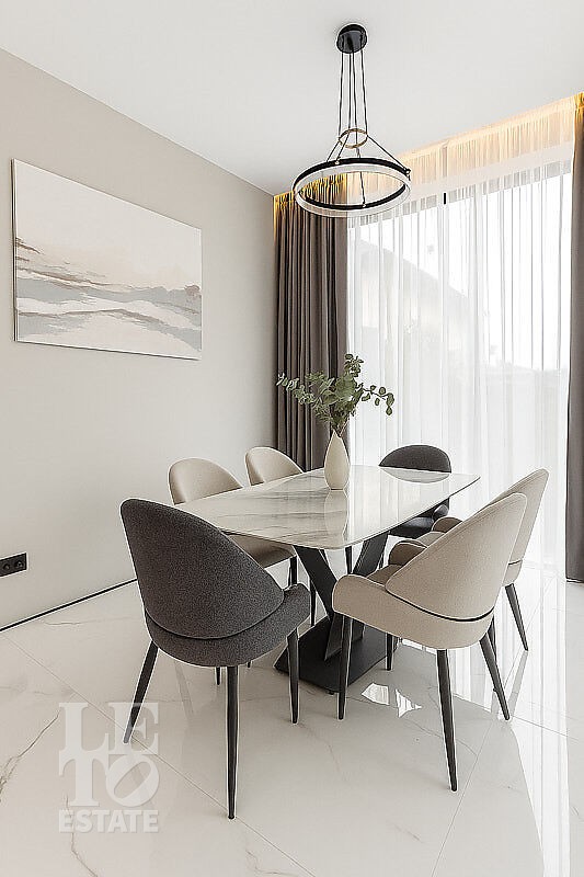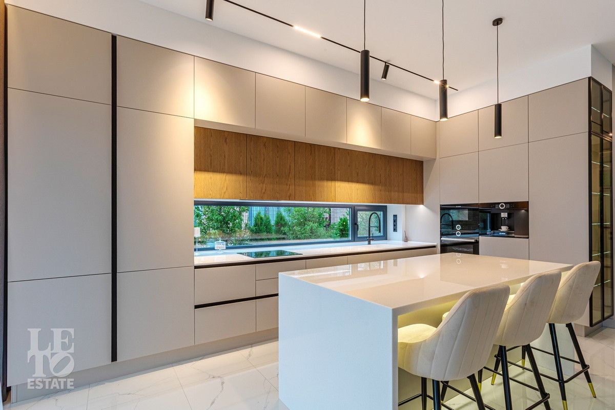 Дом построен из блоков, монолитные перекрытия, крыша - мягкая кровля. Спроектирован с использованием основных принципов премиальной недвижимости: современный стиль, панорамные окна, высокие потолки 3,2 м. В доме есть вся необходимая встроенная техника и мебель. Продуманная планировка: пять спален, одна из которых расположена на первом этаже. На кухне есть вся необходимая встроенная техника. В каждой спальне установлена система кондиционирования.