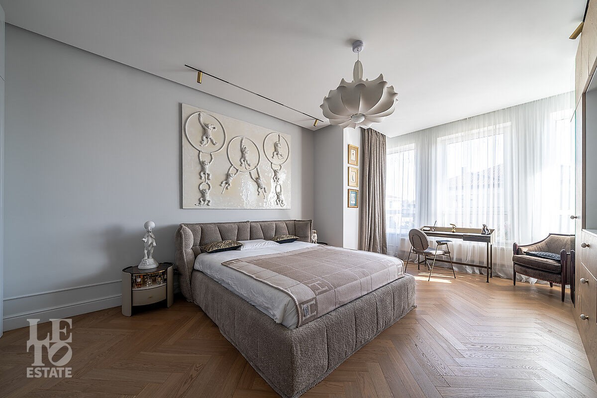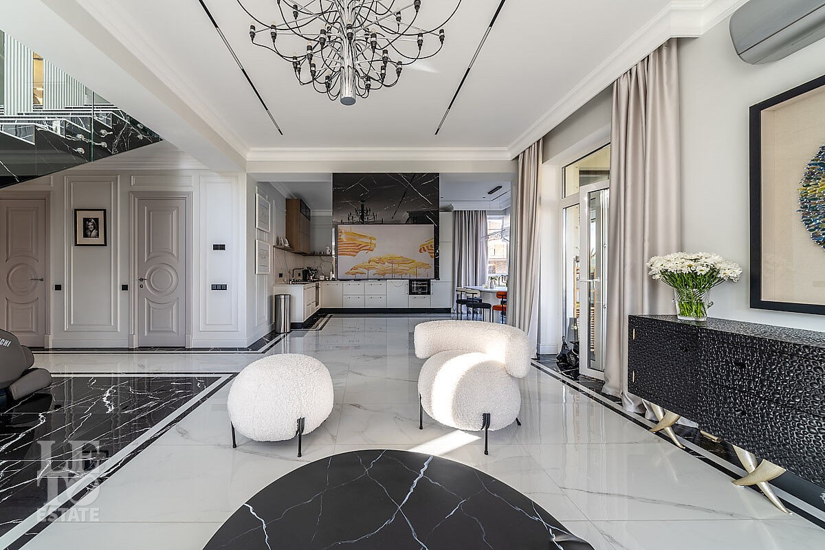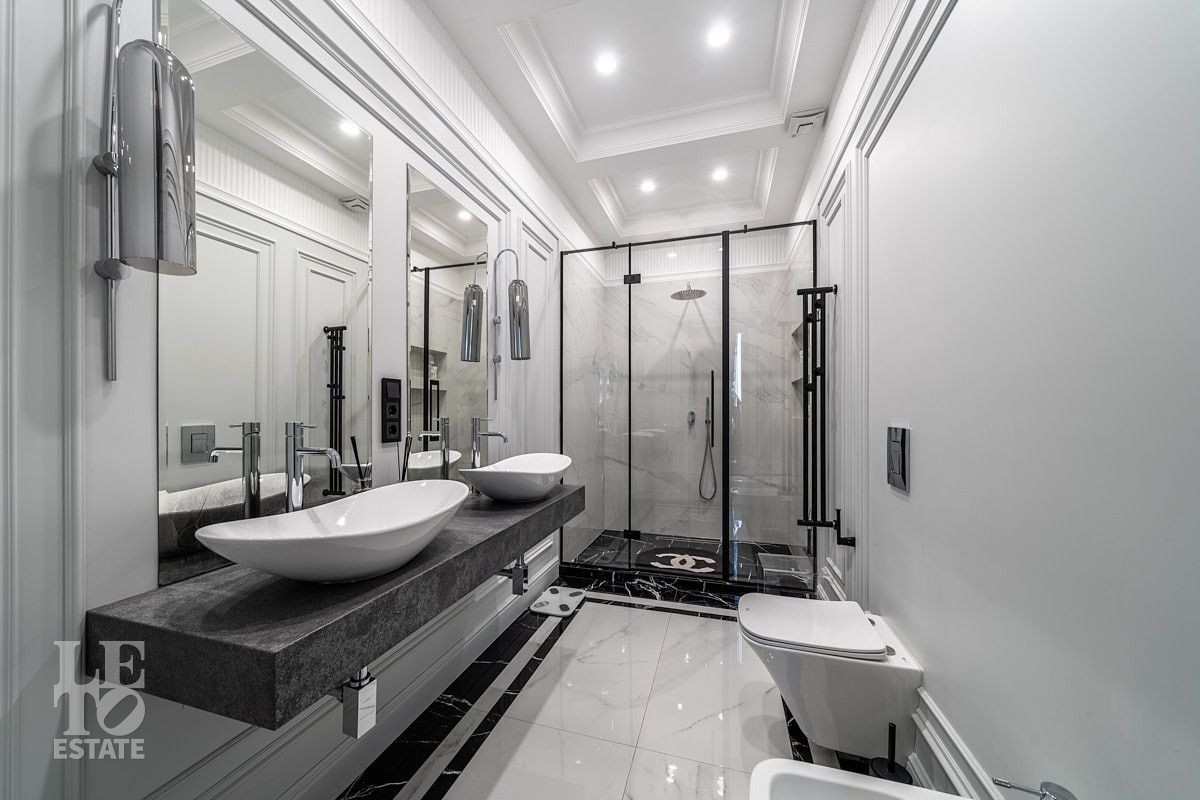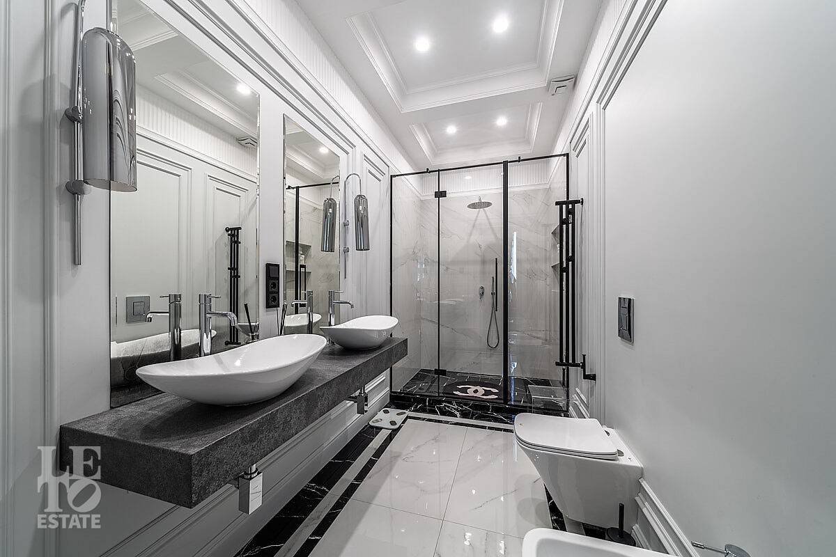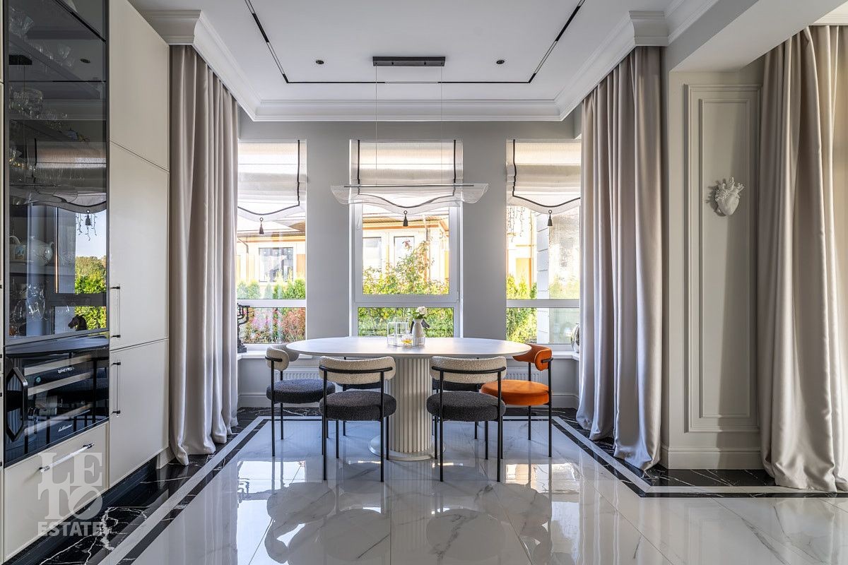 Отделка выполнена по индивидуальному проекту. Интерьер продуман до мелочей. Эксклюзивные дизайнерские решения придают уникальность внутреннему пространству дома.