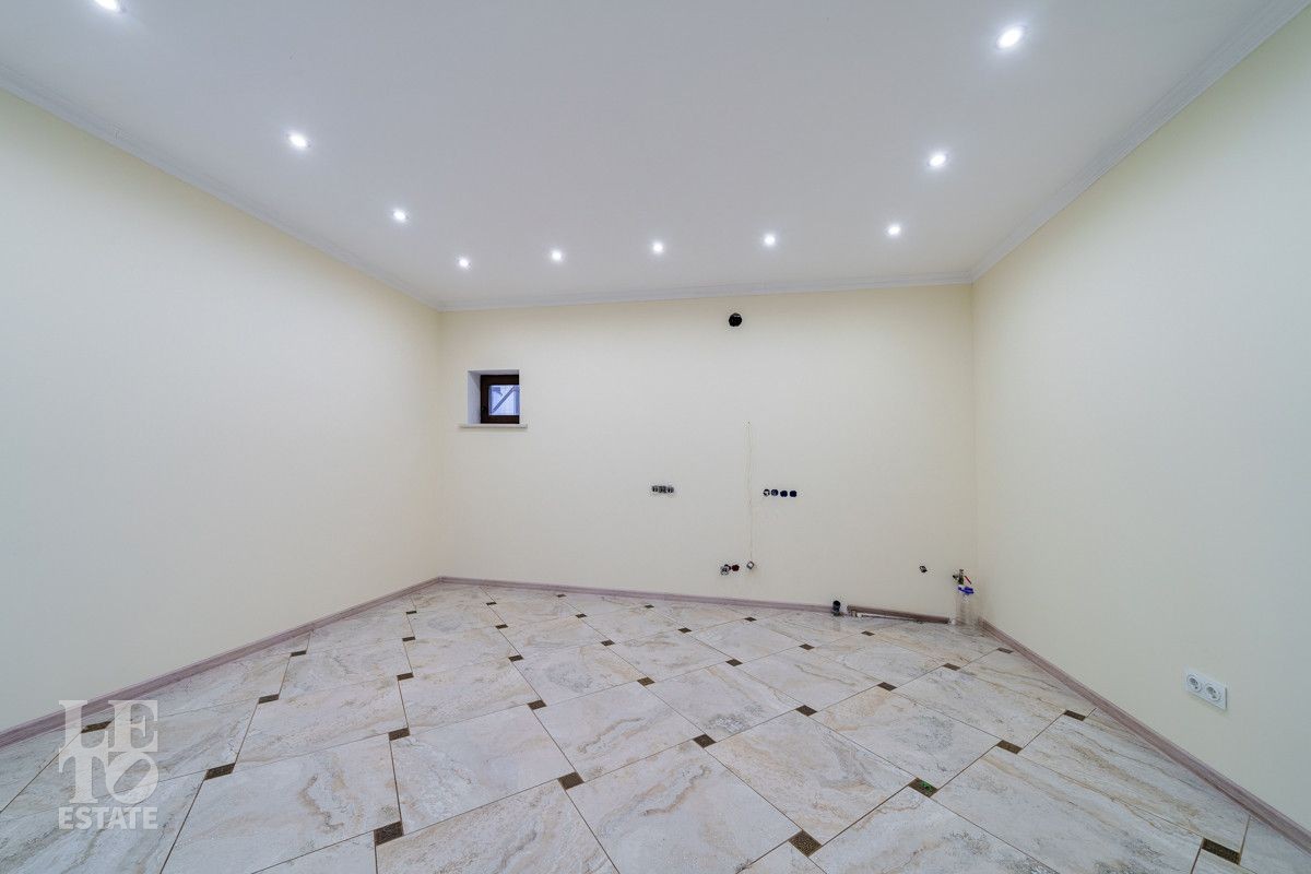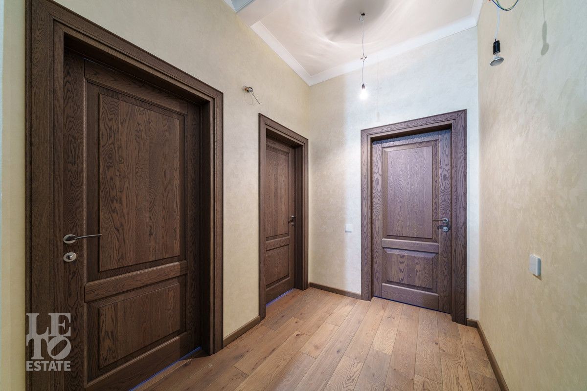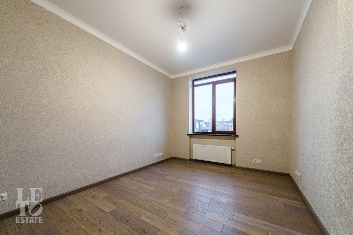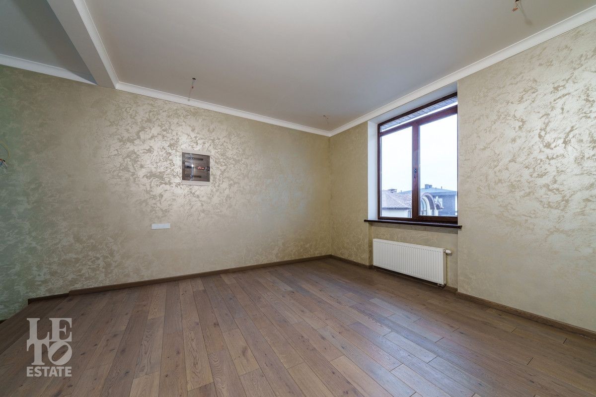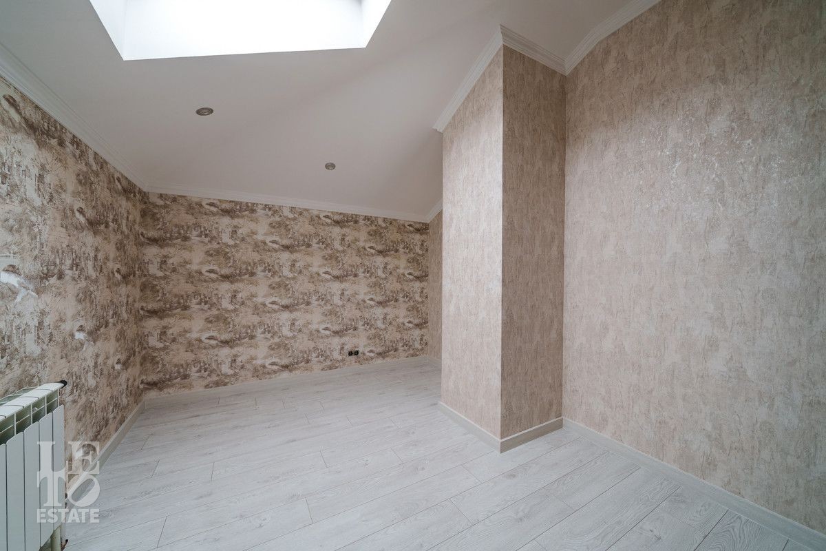 В основном доме на первом этаже можно оборудовать две спальни, на втором этаже три спальни. Отделка стен выполнена декоративной штукатуркой, использованы натуральные материалы для лестницы и дверей - дуб, пол - инженерная доска. Теплые полы разведены на первом этаже, на втором этаже в санузлах. Установлено кондиционирование.