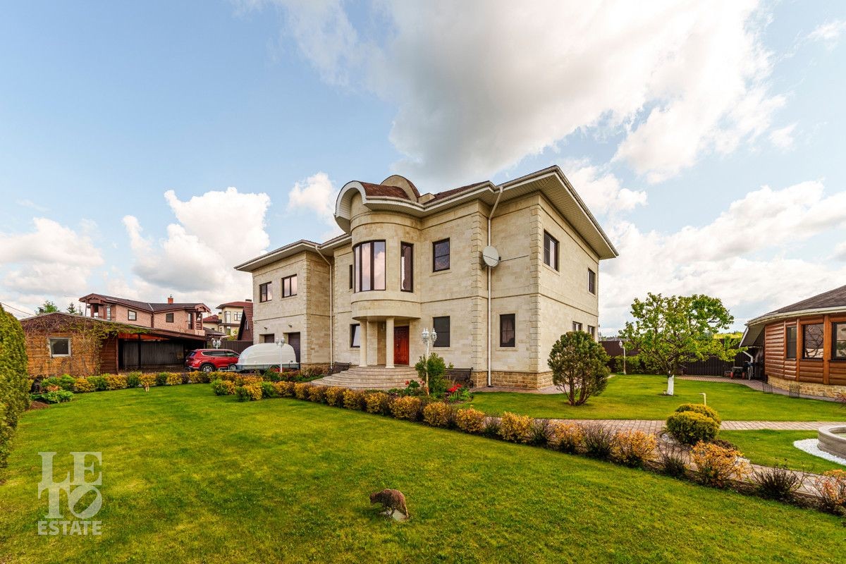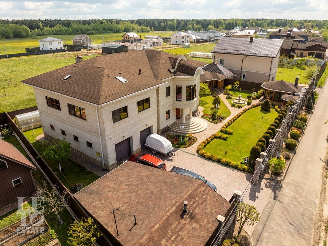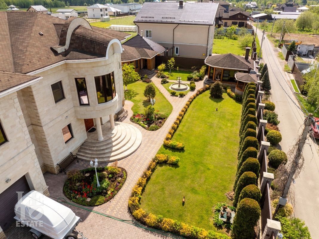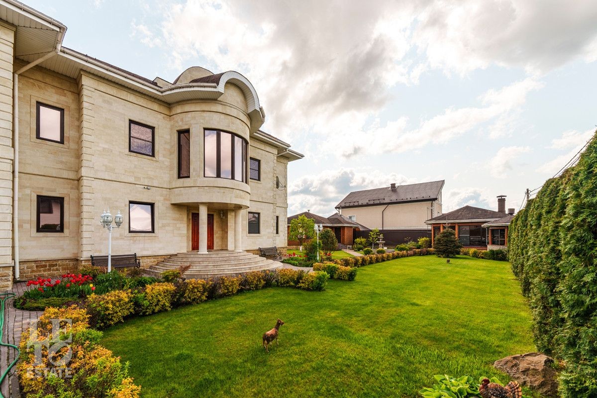 На участке зеленый газон, сделан дренаж, автополив, организовано освещение, вымощены дорожки, установлены автоматические въездные ворота.