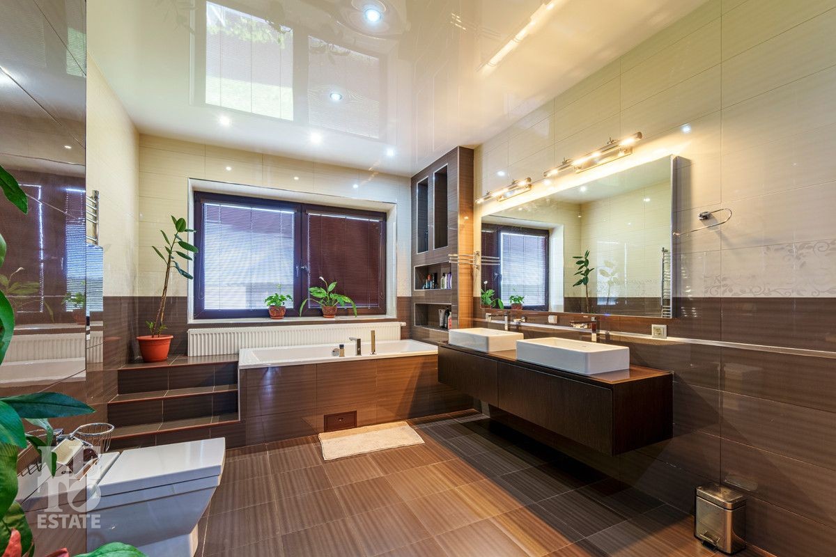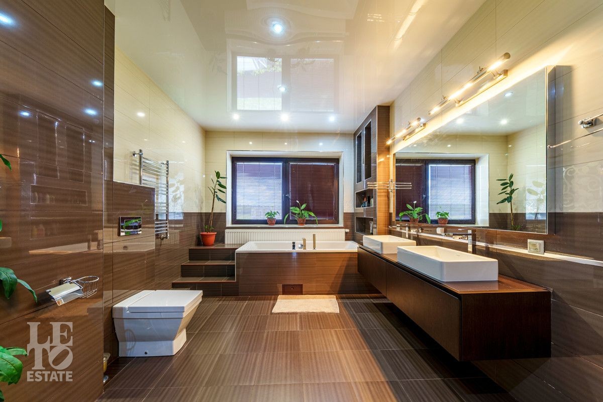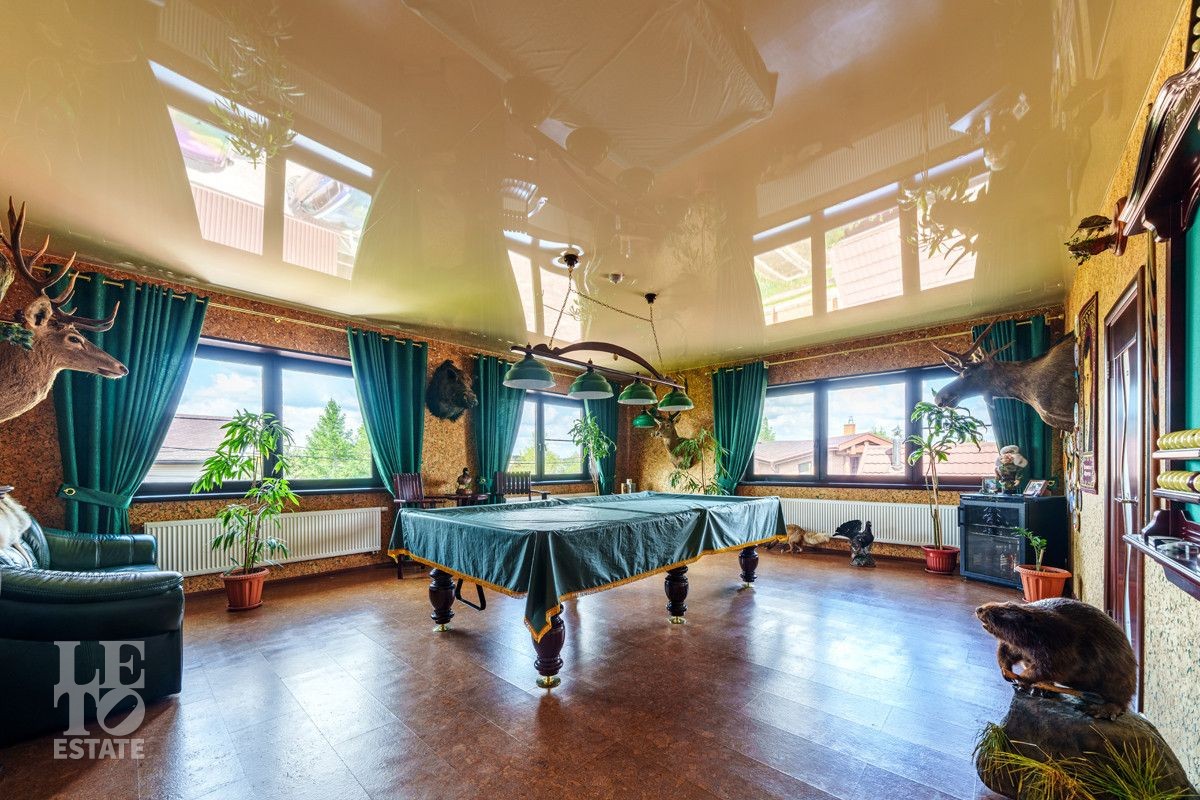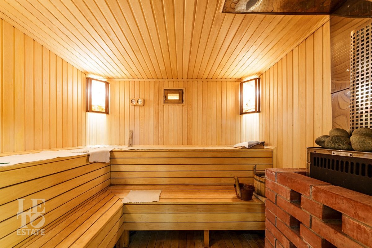 В доме есть все необходимое для комфортной жизни: просторные спальни, рабочий кабинет, собственный спортзал, досуговая зона с бильярдом, уютная гостиная, большой теплый гараж - каждый уголок этого загородного дома наполнен уютом и удобствами, а чтобы окунуться в атмосферу релакса, на участке построена баня с печью, мангалом и комфортной зоной отдыха.