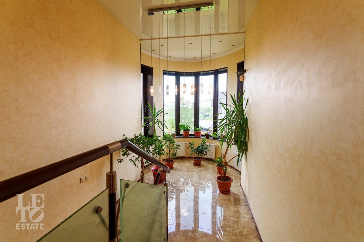 Второй этаж: уютный холл, четыре спальни, детская спальня, два просторных санузла с ванной, бильярдная с камином, спортзал.