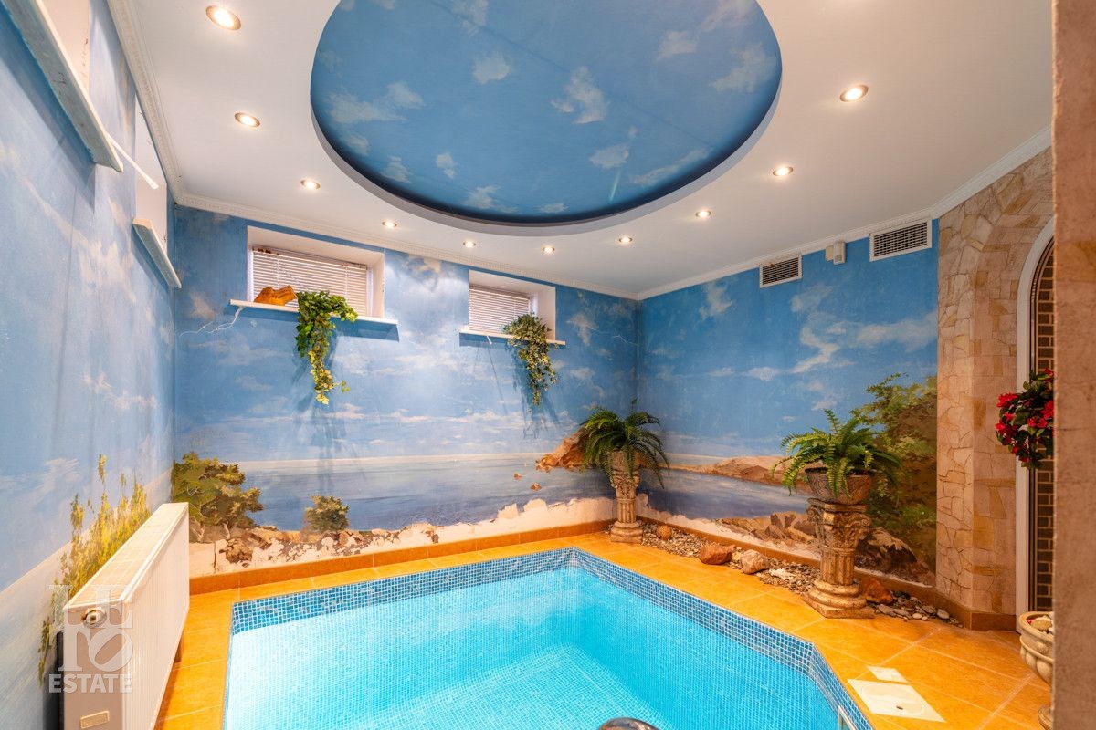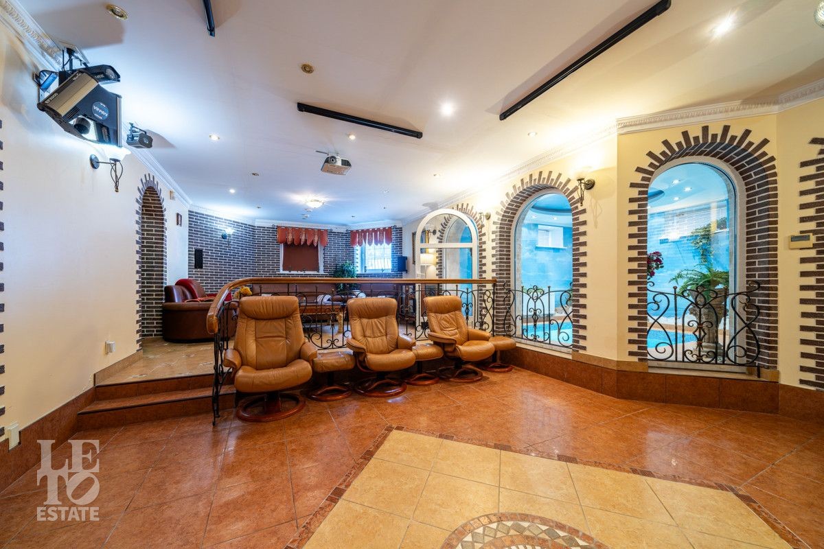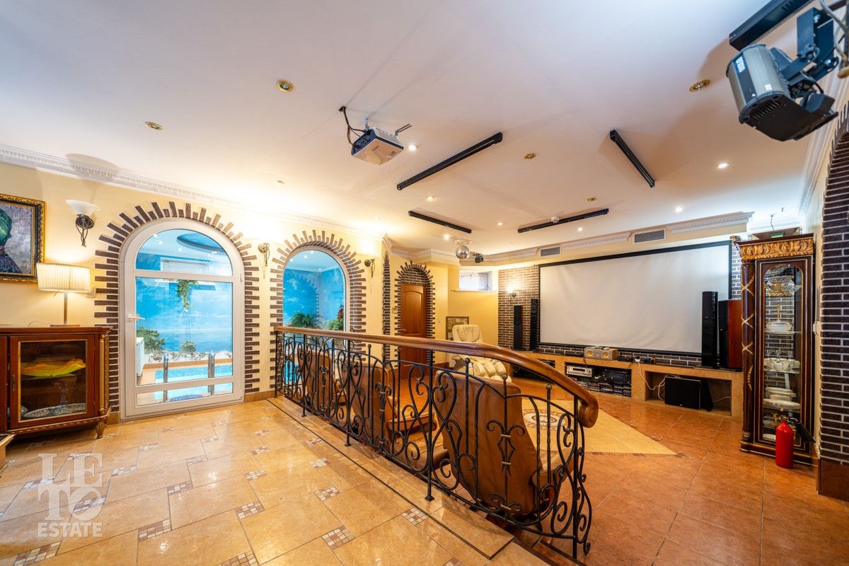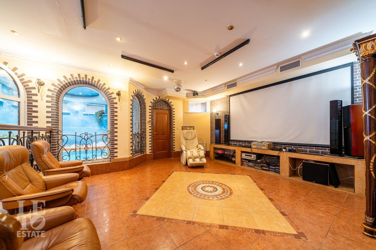 Цокольный этаж: зал с домашним кинотеатром, электрическая сауна, бассейн;