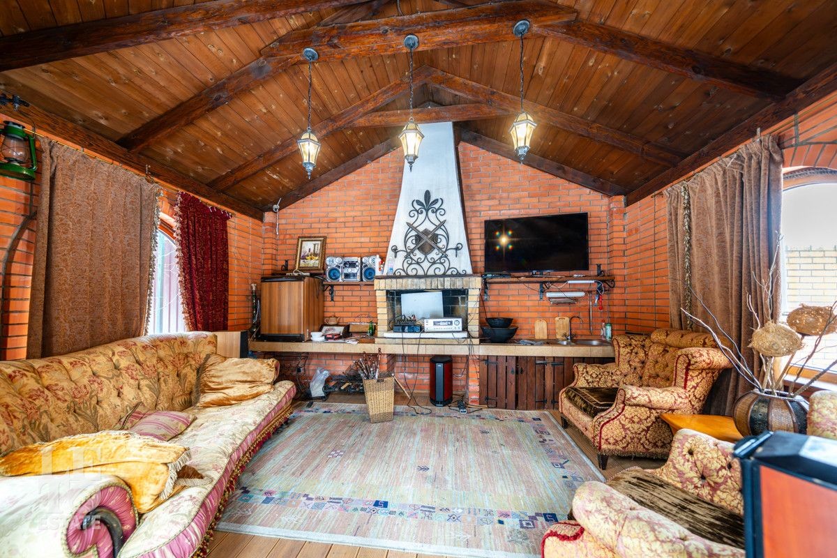 Ухоженный участок площадью 17.69 соток представляет собой настоящий оазис приватности, обрамленный стройными туями. Здесь организована лаунж-зона с крытой верандой, акустической системой и мангалом, а также установлен профессиональный батут для активного отдыха детей.