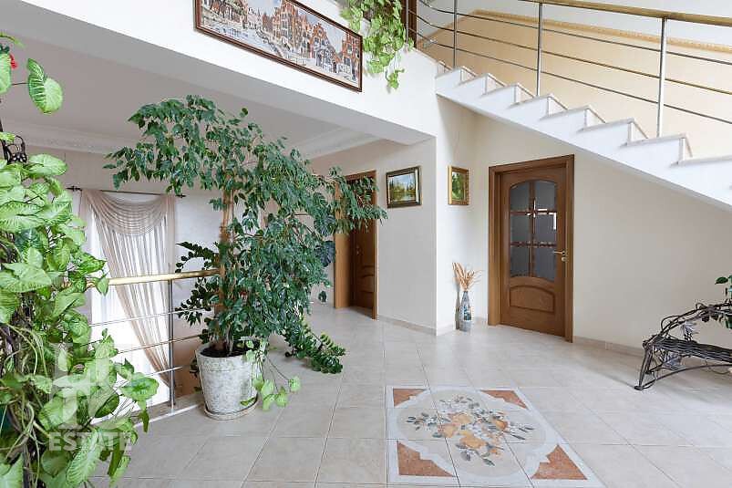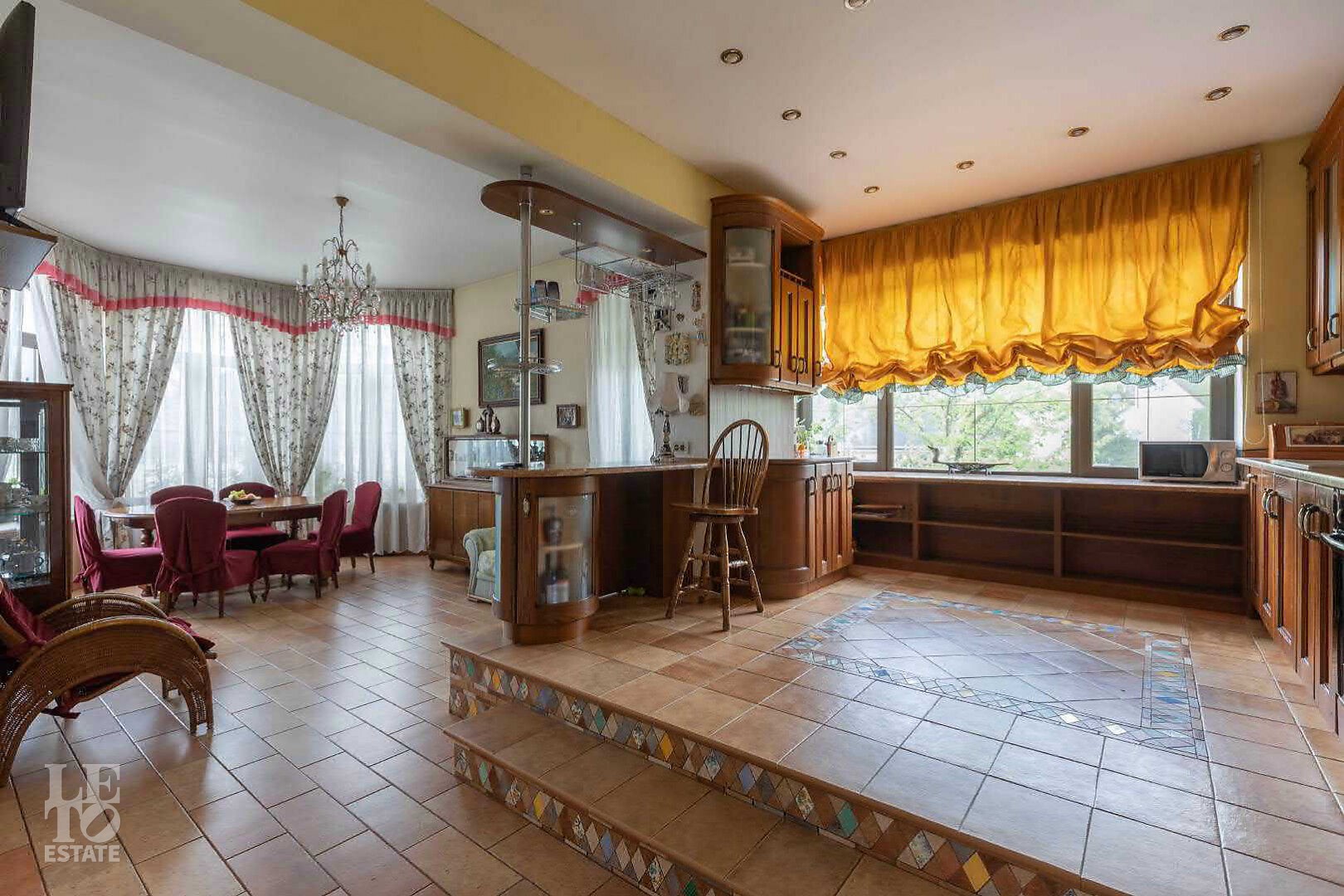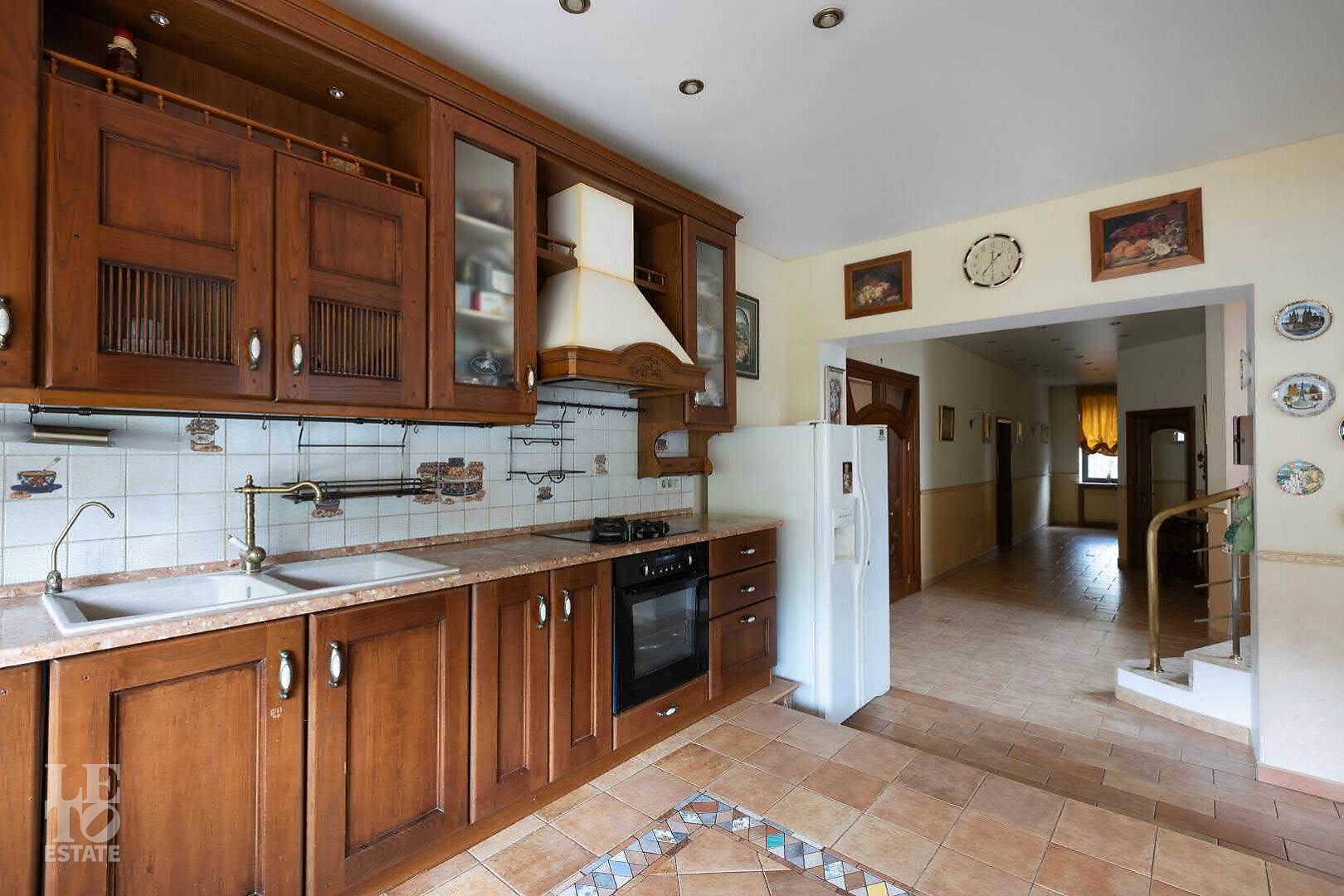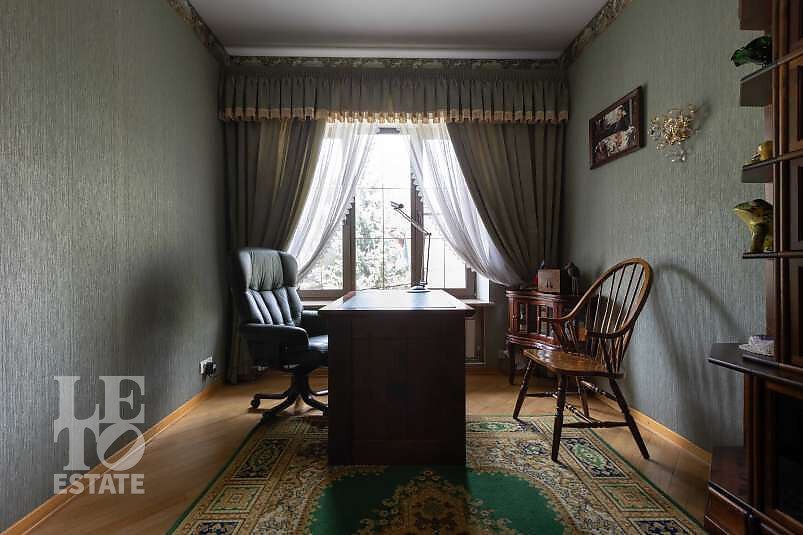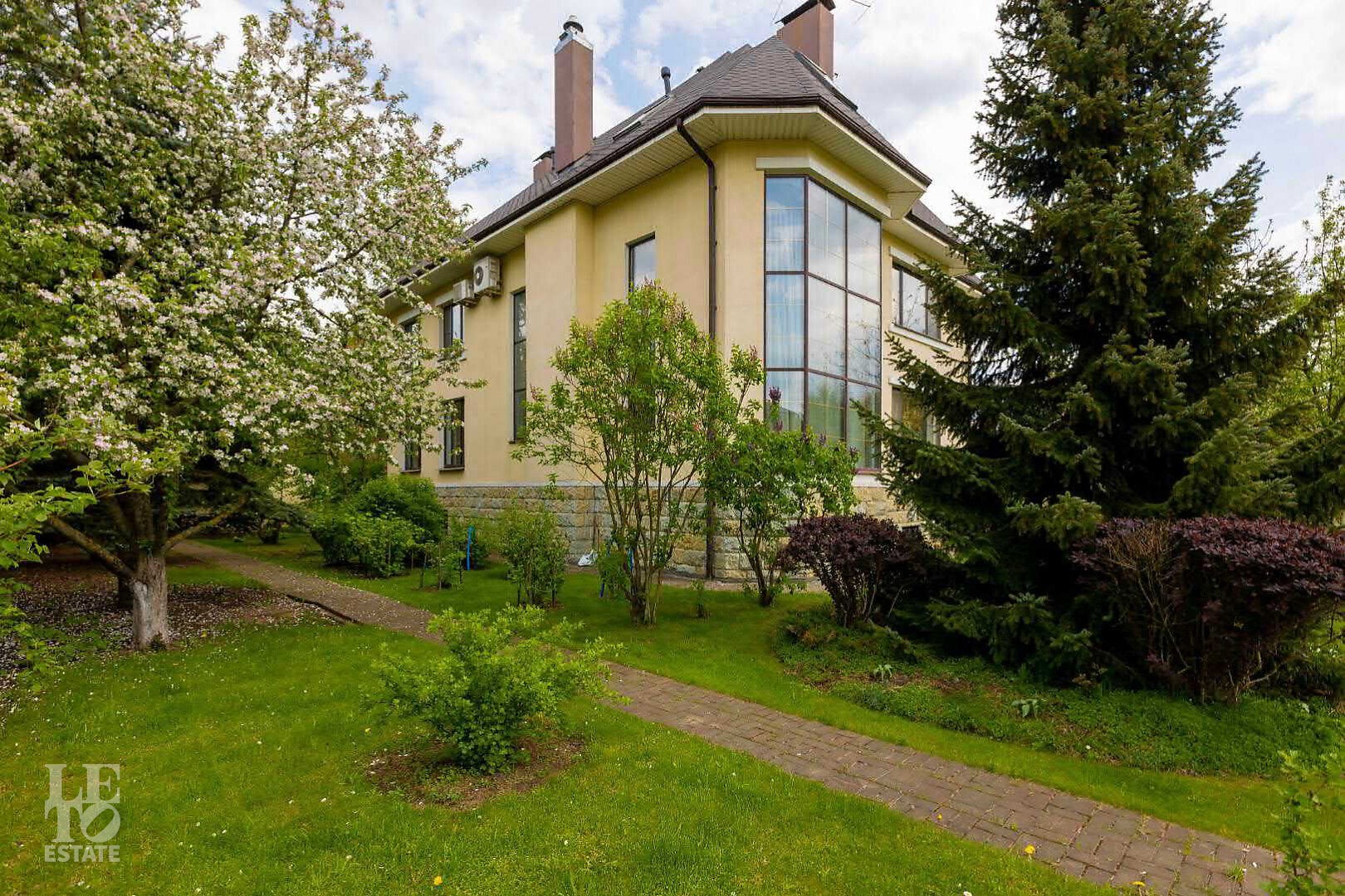 Площадь коттеджа 526 кв.м. 4 уровня, включая мансарду и цокольный этаж. В доме 4 спальни, 5 с/у, кухня-столовая, каминный зал, кабинет, сауна, бильярдная, спортивный зал.