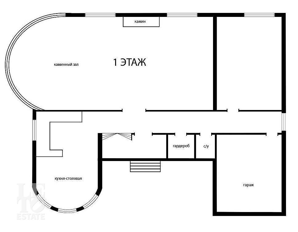 Первый этаж: гардеробная, с/у, кухня-столовая, каминный зал, гараж, комната свободного назначения.