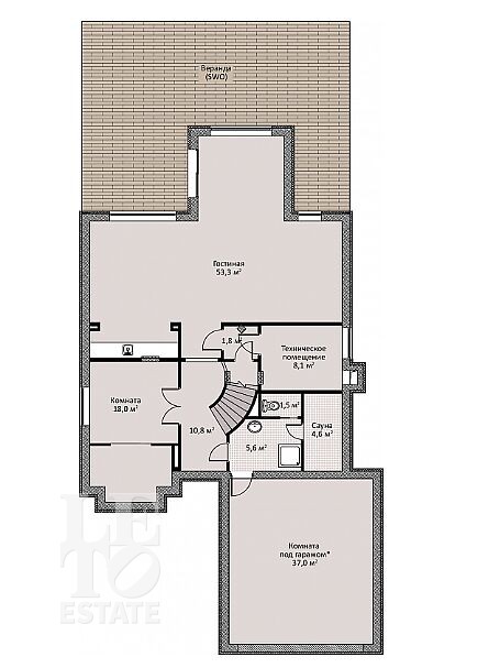 Цокольный этаж- гостиная с выходом на веранду, комната отдыха,техническое помещение, с/у, комната под гаражом, сауна.