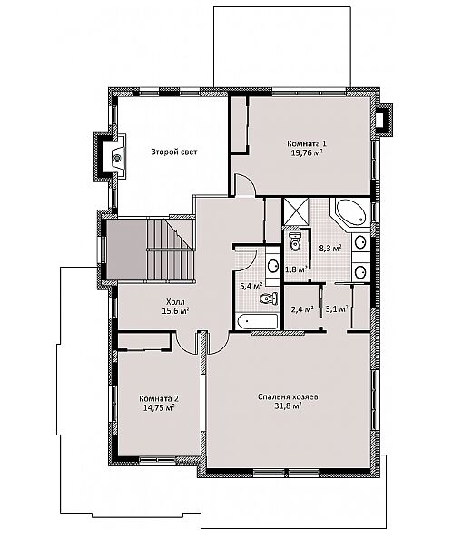 Второй этаж - мастер спальня с гардеробной и с/у, 3 спальни, с/у.