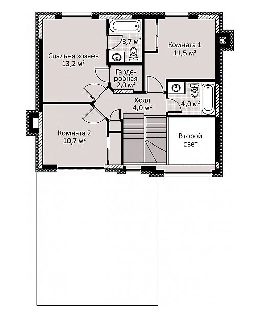 Второй этаж - мастер спальня со своей гардеробной и ванной комнатой, 2 спальни, с/у.