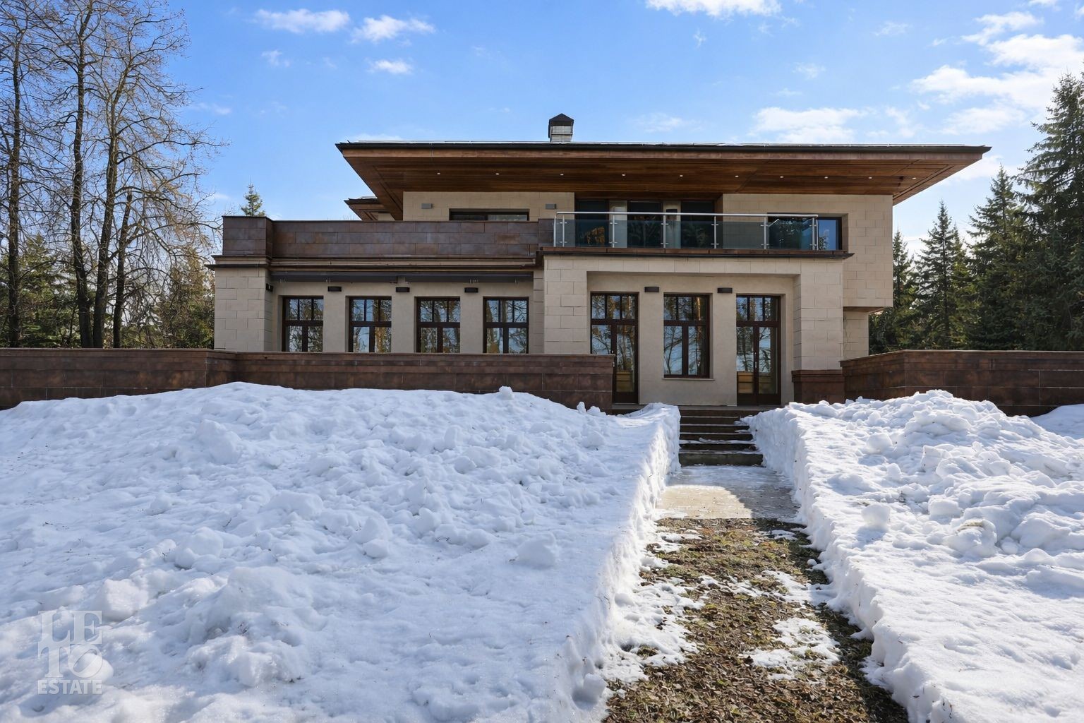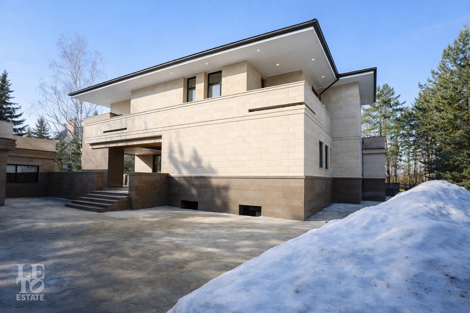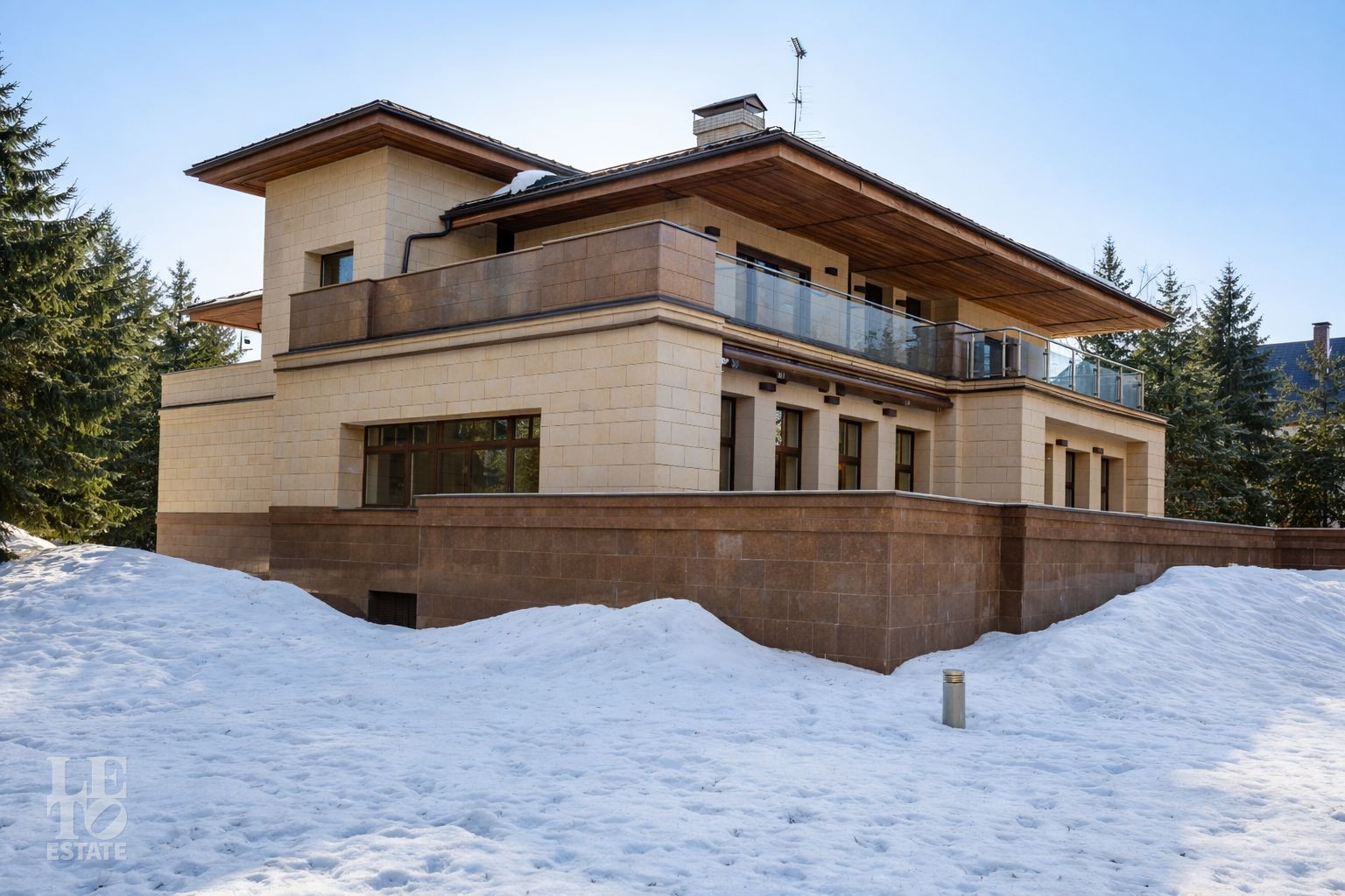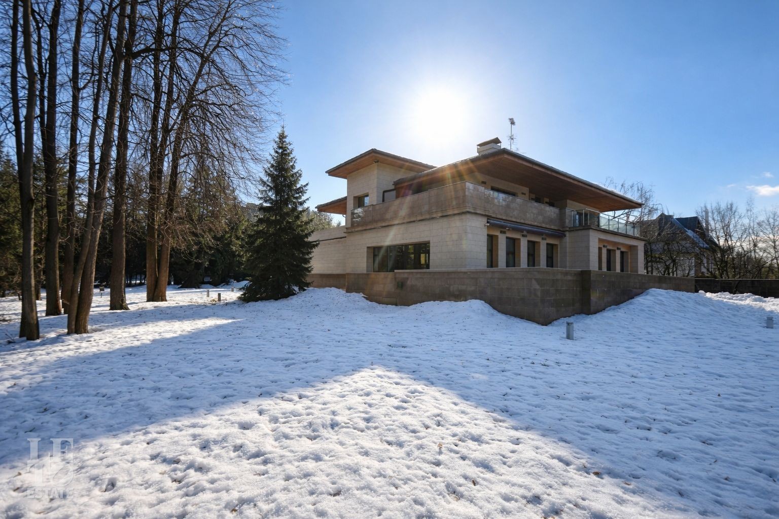 Дом расположен на первой линии Москва-реки. В доме выполнена отделка в современном стиле с использованием теплых оттенков, фактуры камня и дерева. Использованы исключительно европейские дорогостоящие материалы, встроенная и мягкая мебель от ведущих мировых производителей. В доме все центральные коммуникации: газоснабжение, электричество, водопровод, канализация.