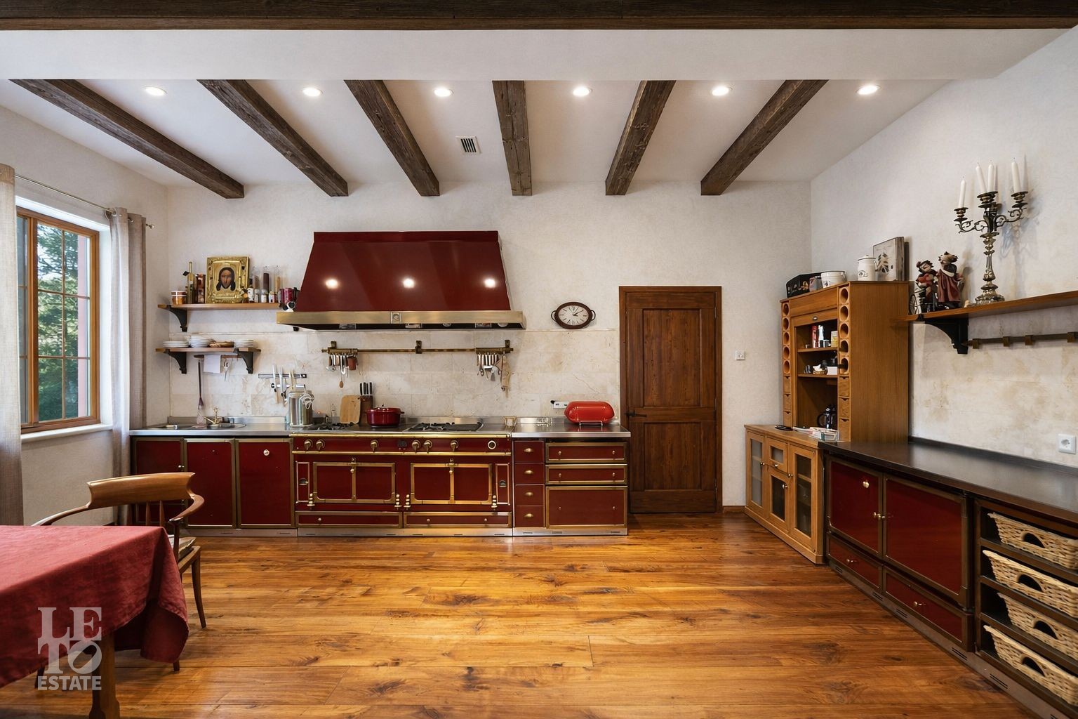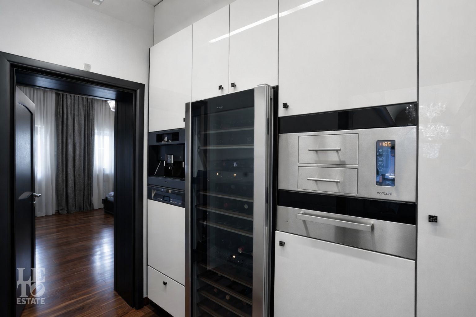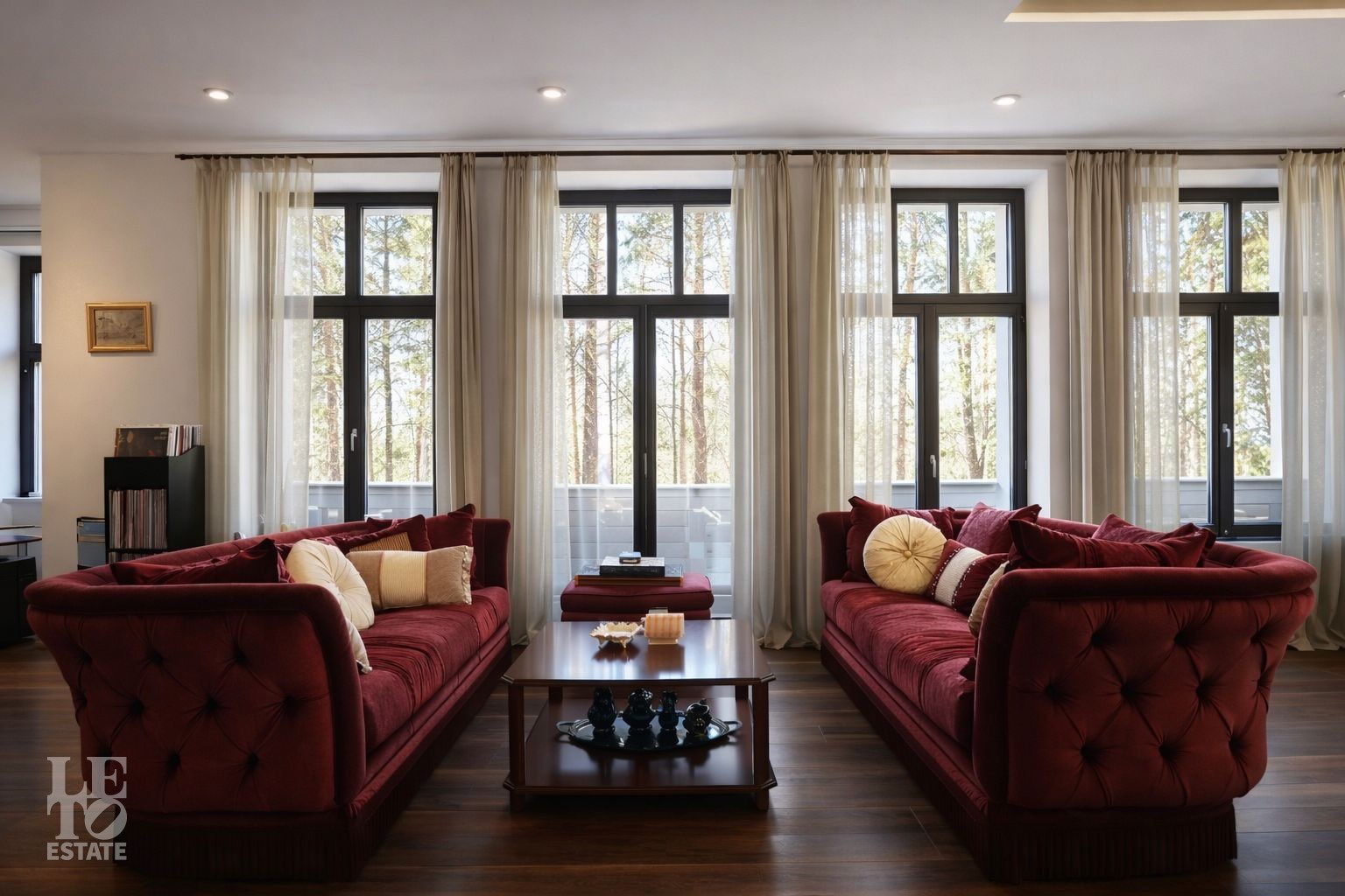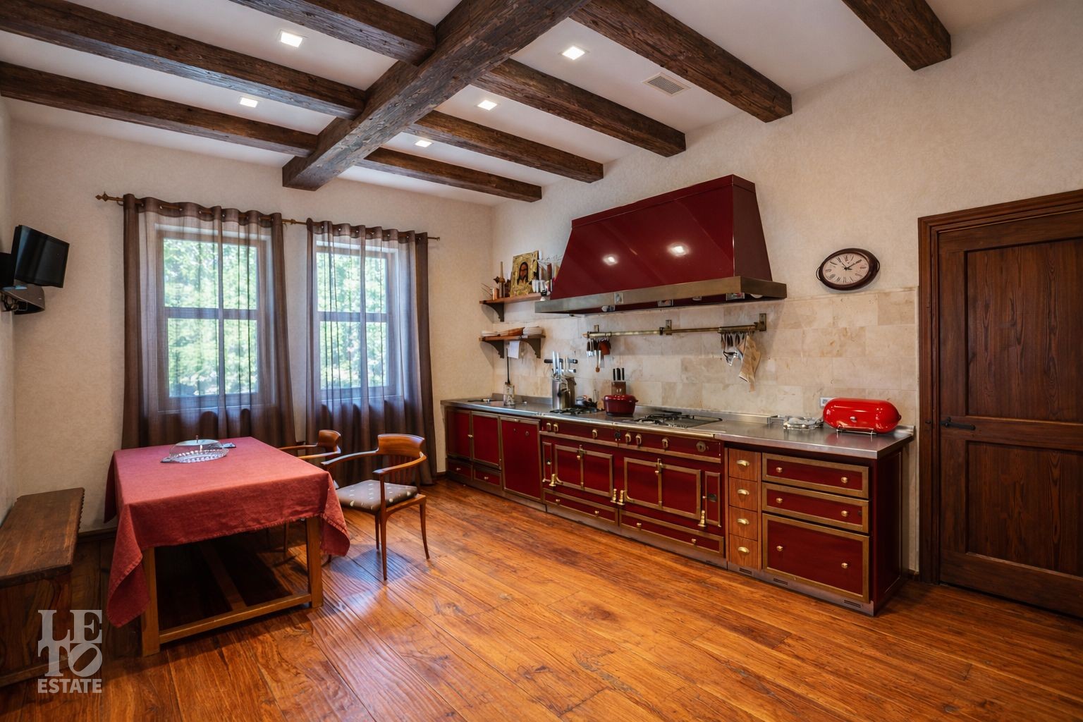 Дом расположен на первой линии Москва-реки. В доме выполнена отделка в современном стиле с использованием теплых оттенков, фактуры камня и дерева. Использованы исключительно европейские дорогостоящие материалы, встроенная и мягкая мебель от ведущих мировых производителей. В доме все центральные коммуникации: газоснабжение, электричество, водопровод, канализация.