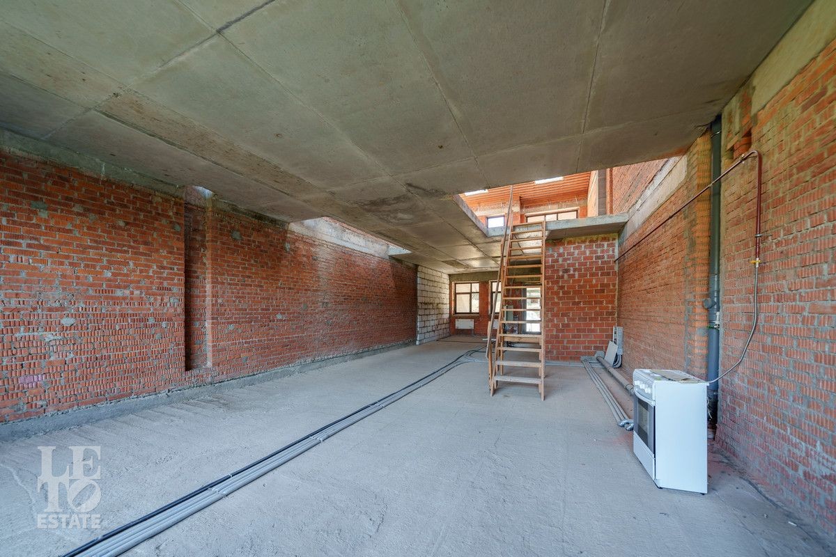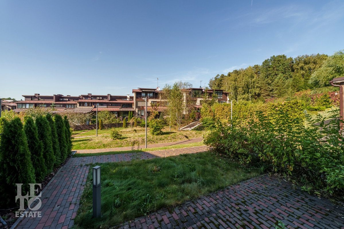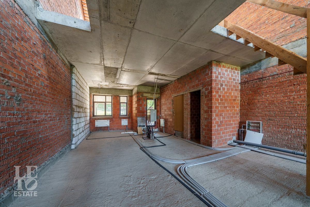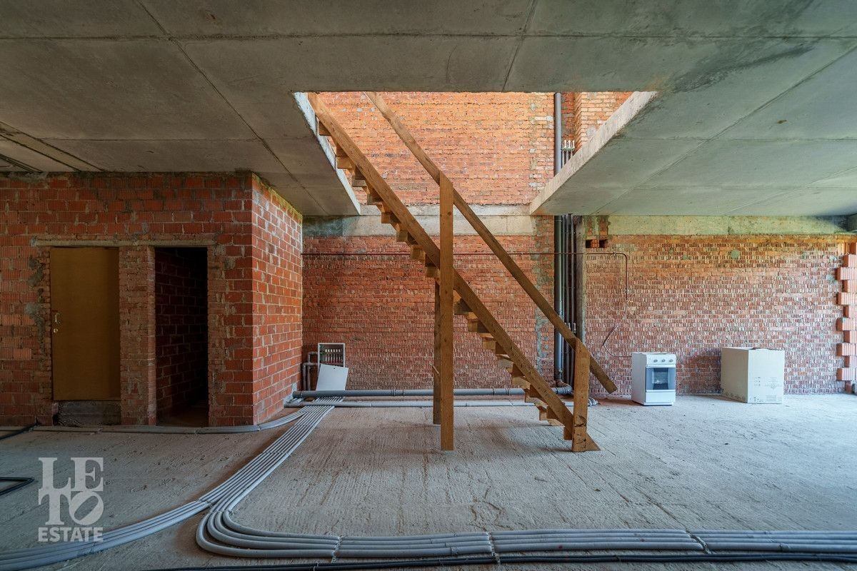 Стоит отметить очень удачное расположение корпуса на территории самого поселка - в самой дальней точке от дороги и КПП. Соседи по блоку таунхаусов уже сделали ремонты и постоянно проживают. Окна таунхауса выходят на прогулочную аллею. Установлен газовый котел Buderus, разведена система отопления, установлены немецкие радиаторы. Площадь таунхауза по БТИ составляет 210 кв. м, однако можно сделать перекрытие между вторым и третьим этажом (высота потолков до 7 метров) и увеличить жилую площадь на 60 кв. м.