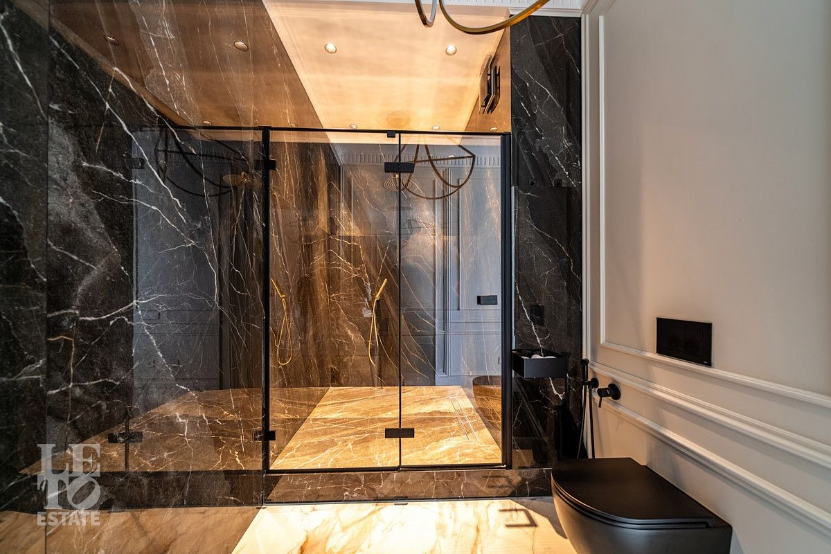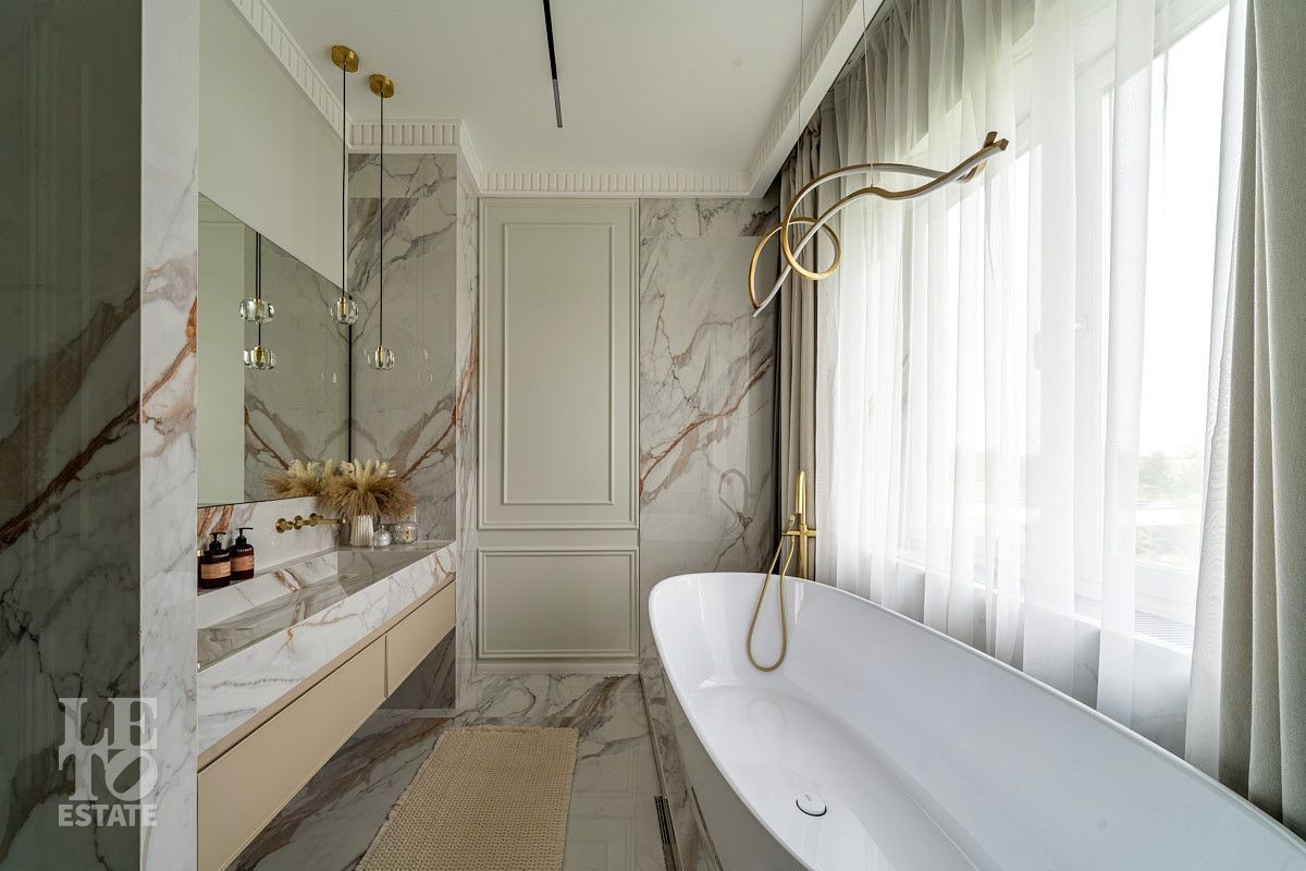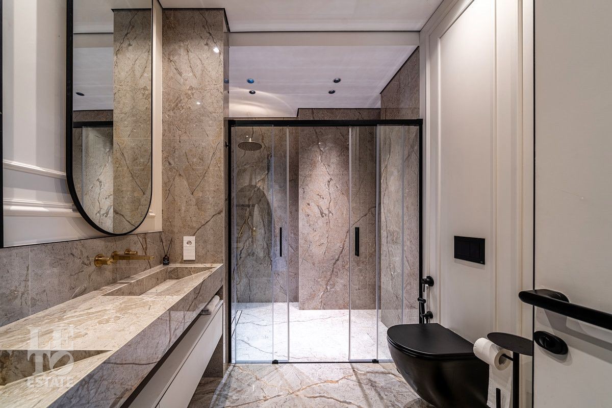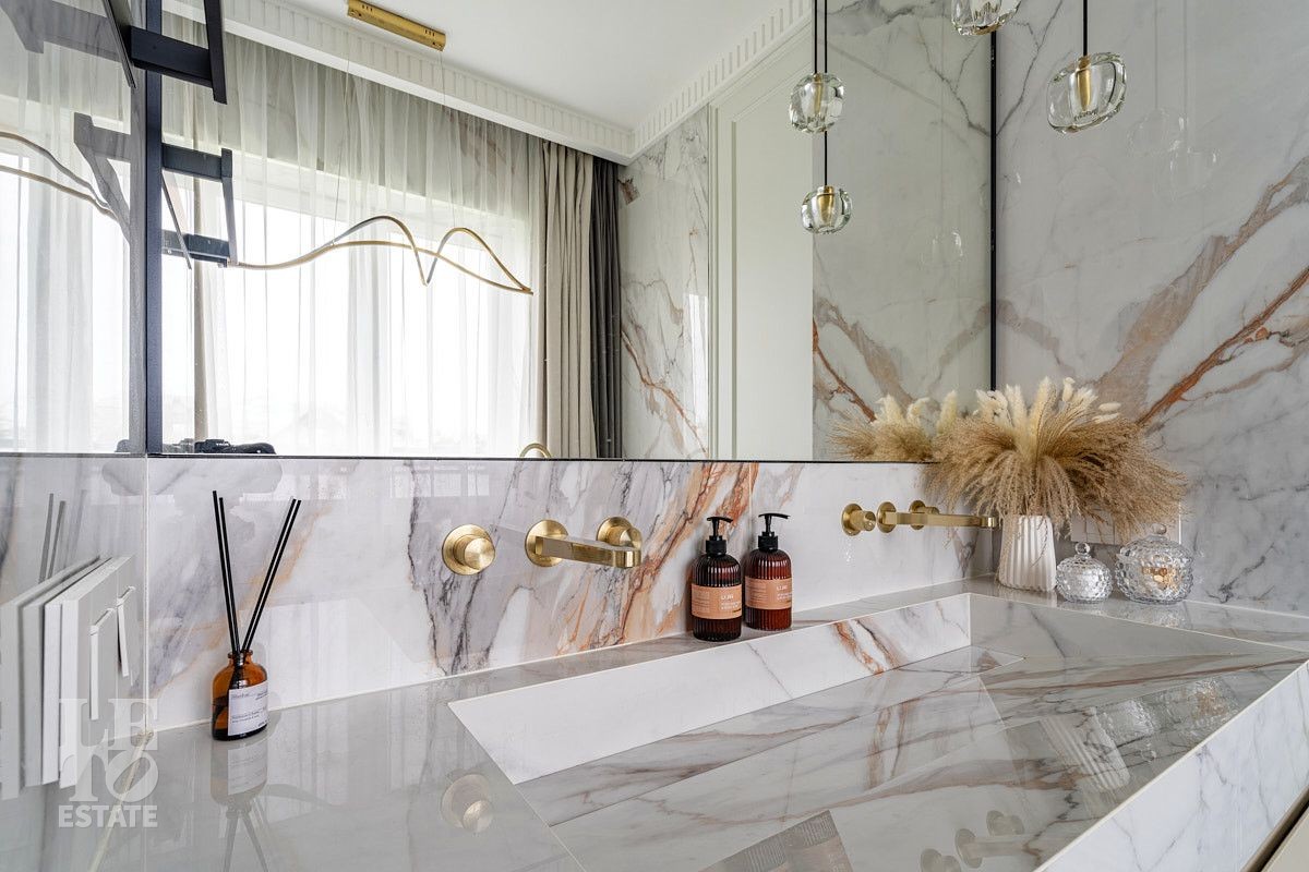Королевский комфорт: Ванные комнаты оснащены элитной сантехникой ведущих зарубежных марок, превращая ежедневные процедуры в сеанс спа-релакса.