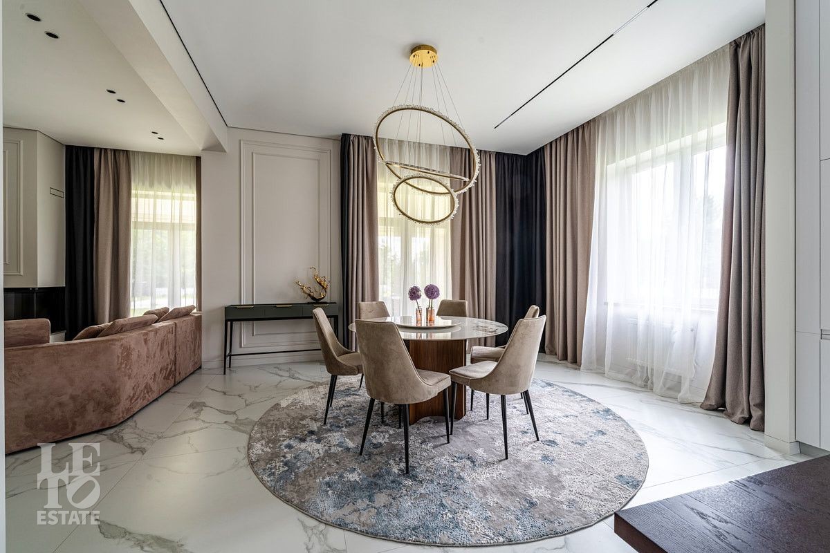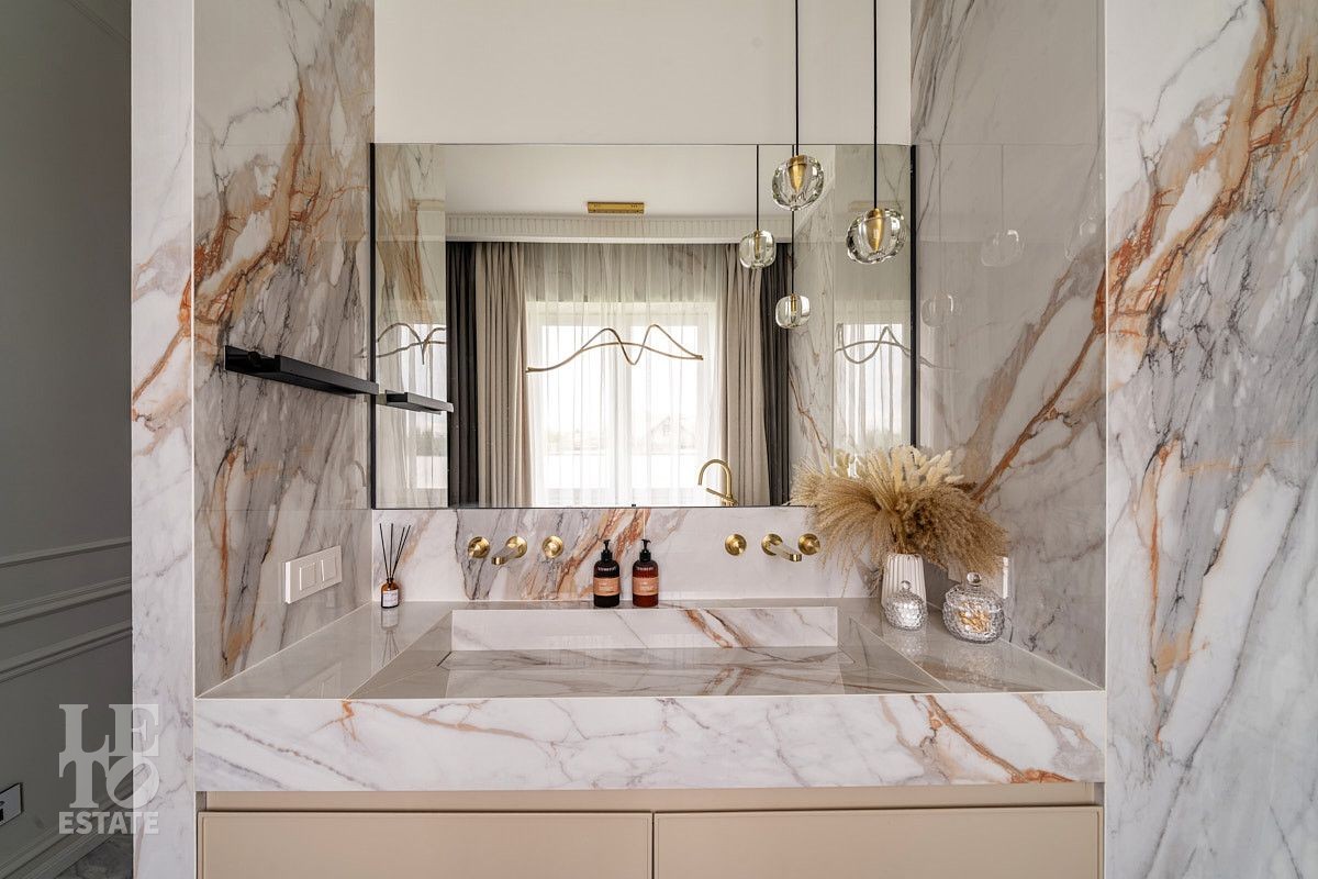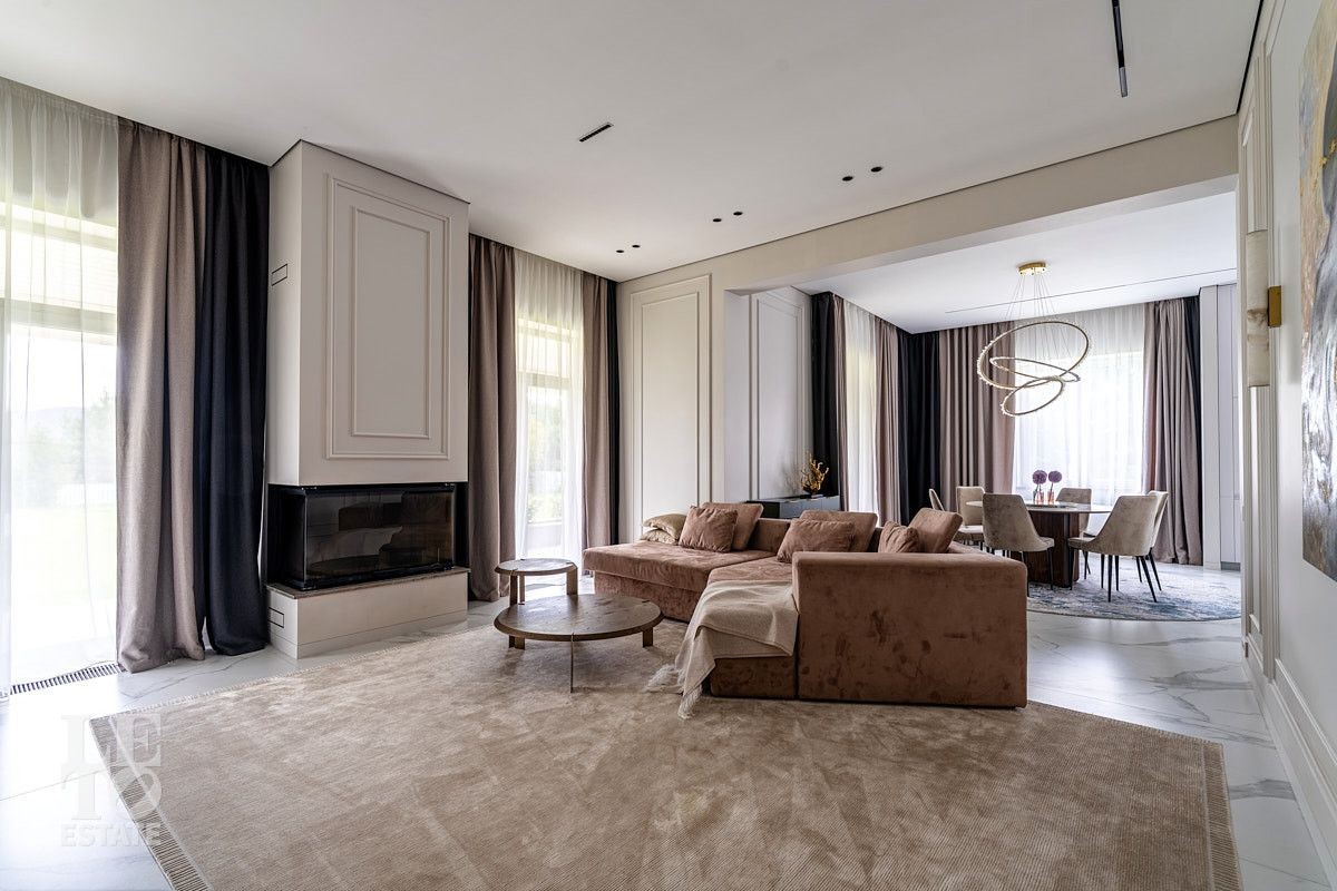 В этом доме выполнена безупречная отделка, где каждая деталь говорит о своем высоком статусе. Авторский подход к отделке прослеживается в каждой линии, каждом материале: