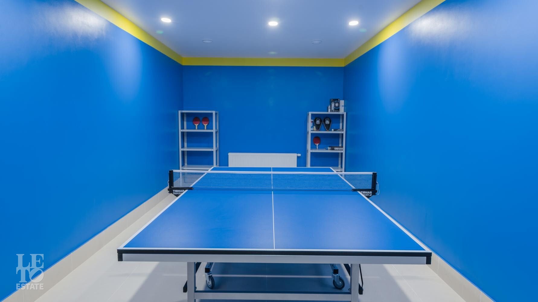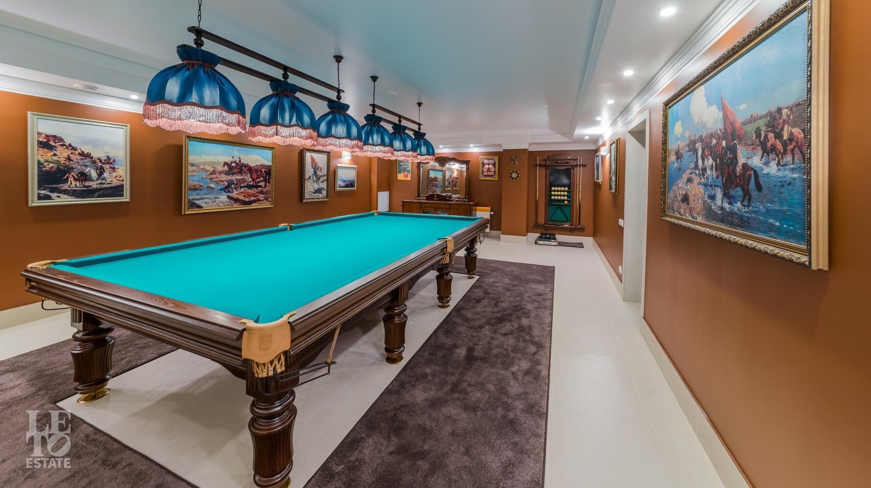 Цокольный этаж: бильярдная, теннисная, места хранения, мастерская;