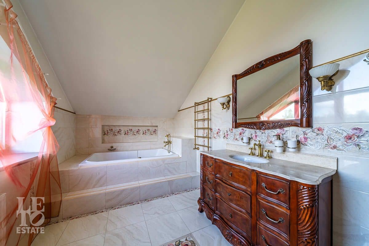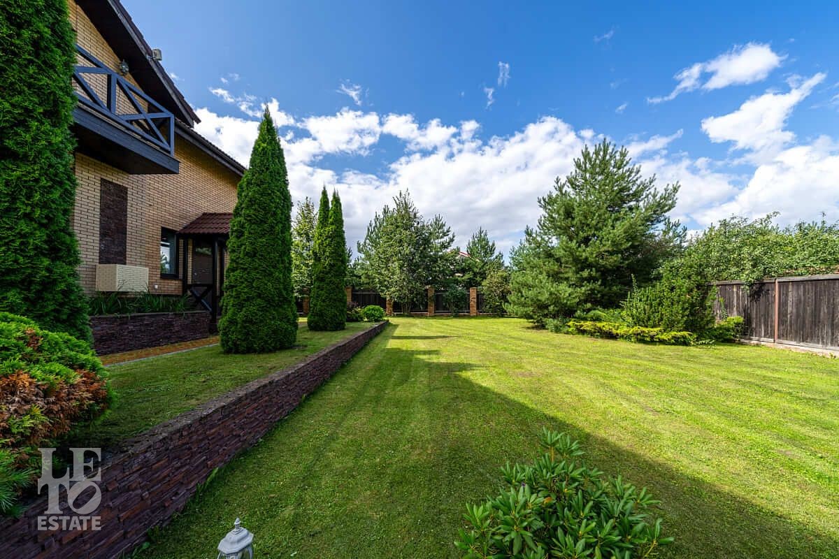 Ухоженный участок с продуманным ландшафтным дизайном: многолетние плодовые деревья, туи, декоративные кустарники и цветы гармонично украшают всю площадь участка. А мощёные дорожки и ландшафтное освещение, дает комфортное перемещение. Также имеется зона барбекю, навес на 2 автомобиля и гостевая парковка.