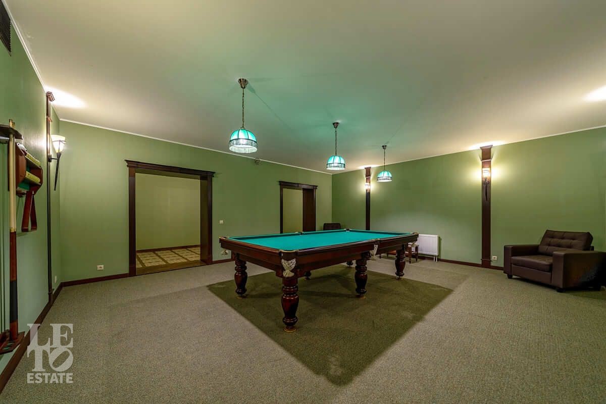 Цокольный этаж: бильярдная, кинотеатр, винная комната, гардеробная и постирочная;