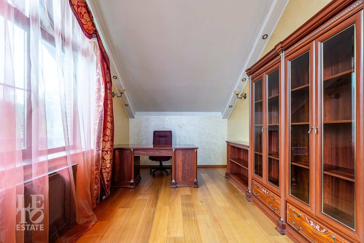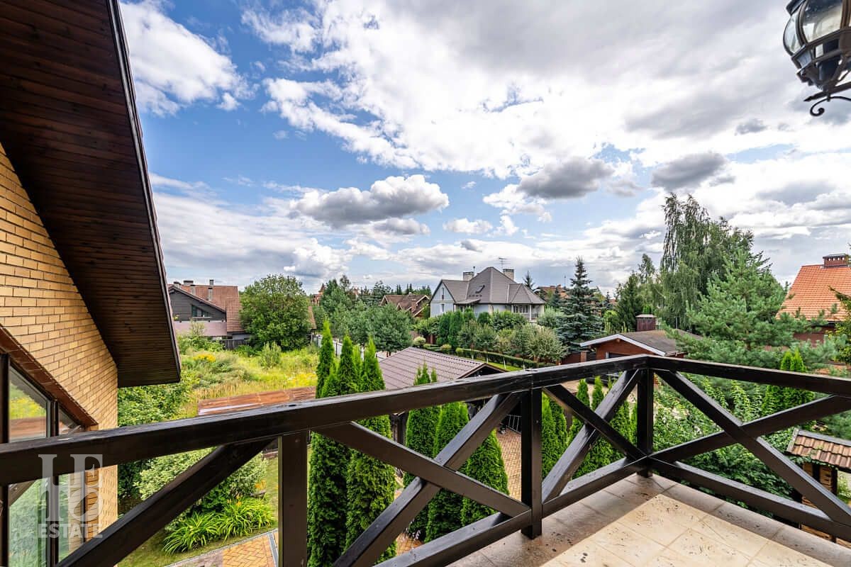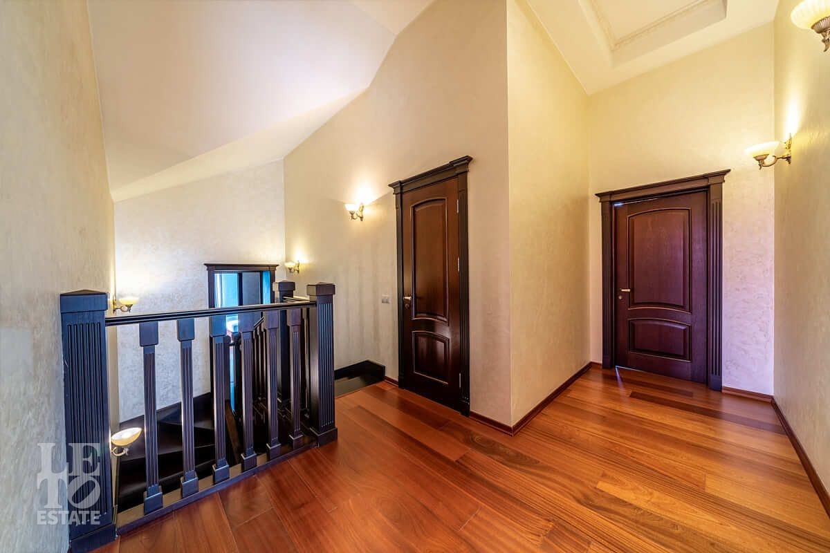Второй этаж: мастер-спальня с гардеробной, санузлом и выходом на балкон, две спальни, кабинет, санузел.