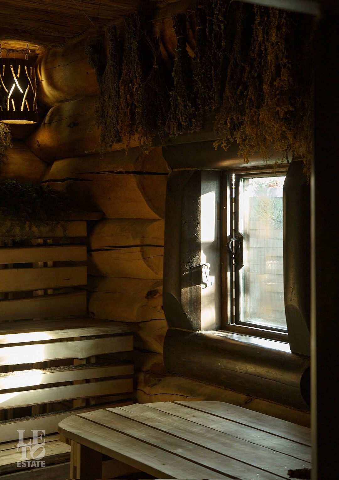 - Банный комплекс (91,8 м²) из сибирского кедра с авторской печью и купелью.