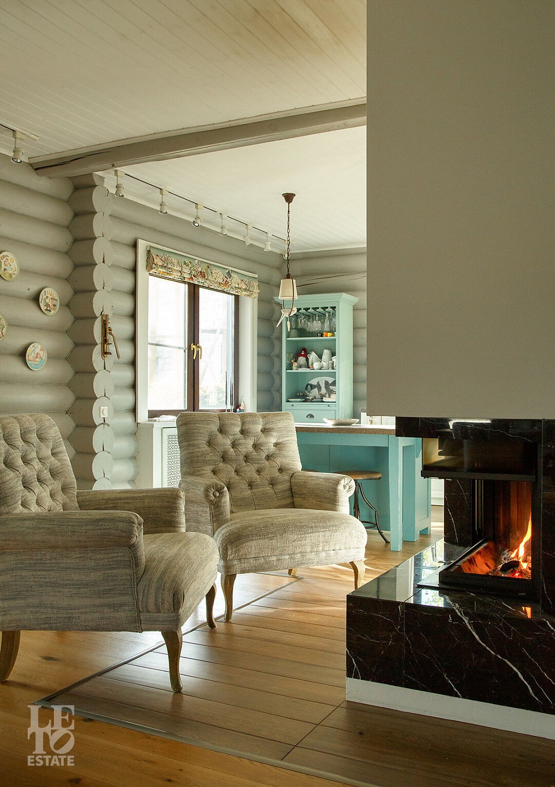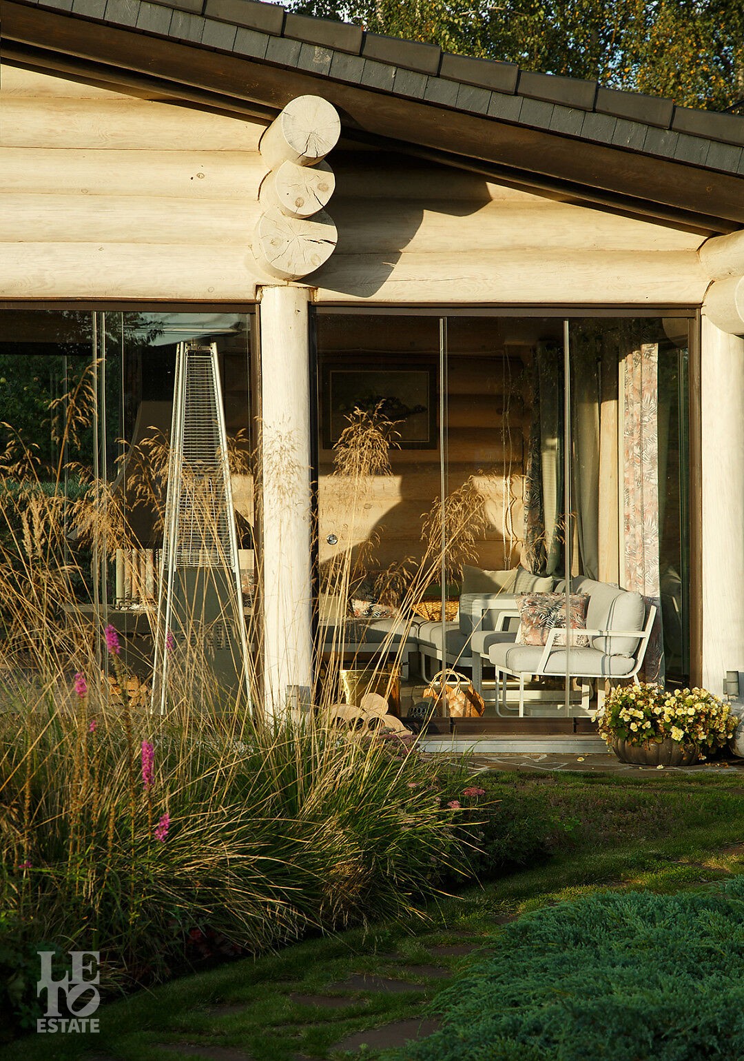 - Основной дом (252,4 м²) из оцилиндрованного бревна с камином и цветущим зимним садом.