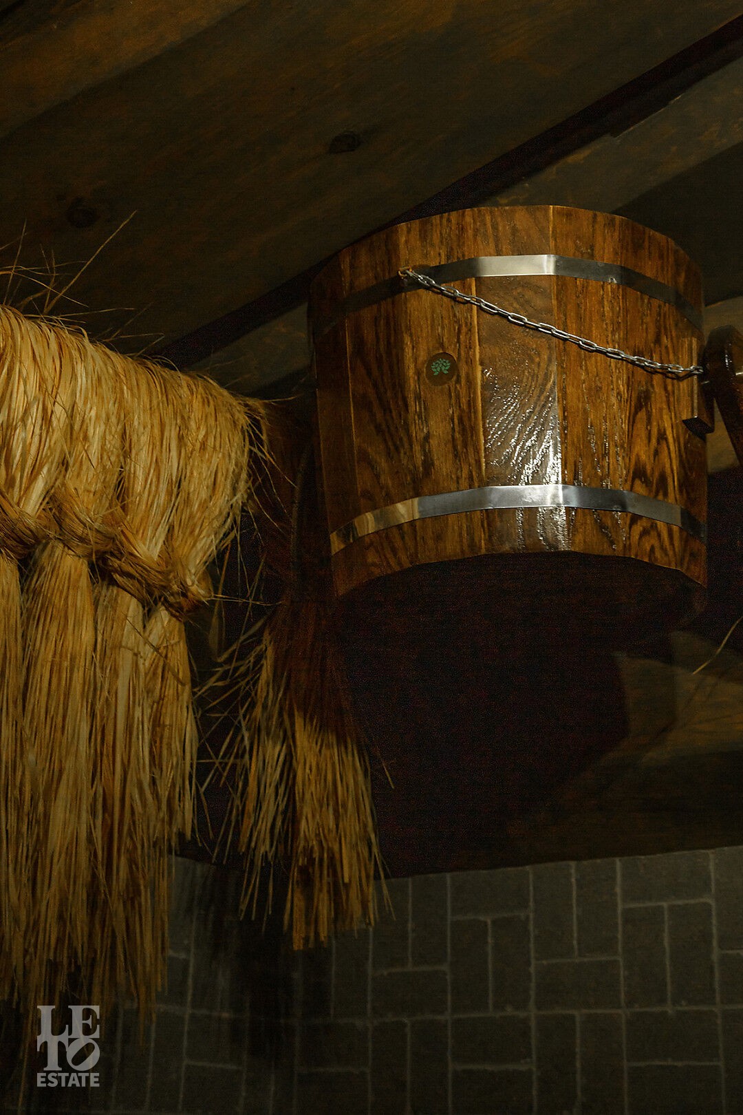 Интерьер в стиле «горное шале» с камином, зоной отдыха с кожаной мебелью, пивным баром на 3 крана и уютной антресолью для отдыха. Высокие потолки и массивные элементы декора создают здесь магическую атмосферу, дополненную ароматом кедра, и превращают это место в нечто большее, чем просто баня.