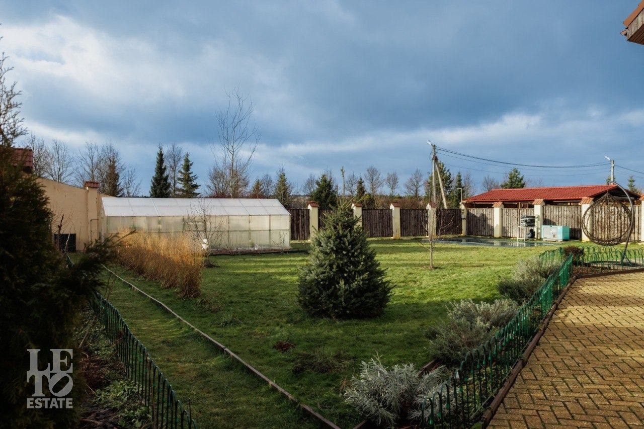 Ровный ухоженный участок . Высажен газон, хвойные, плодовые деревья и кустарники. Парковка на 2 м/м. На участке установлен резервный дизельный генератор. Есть теплица.