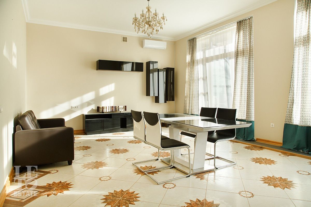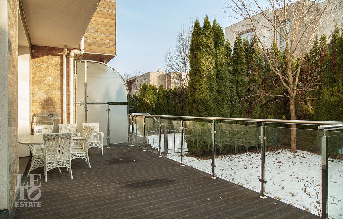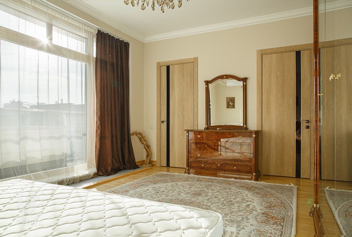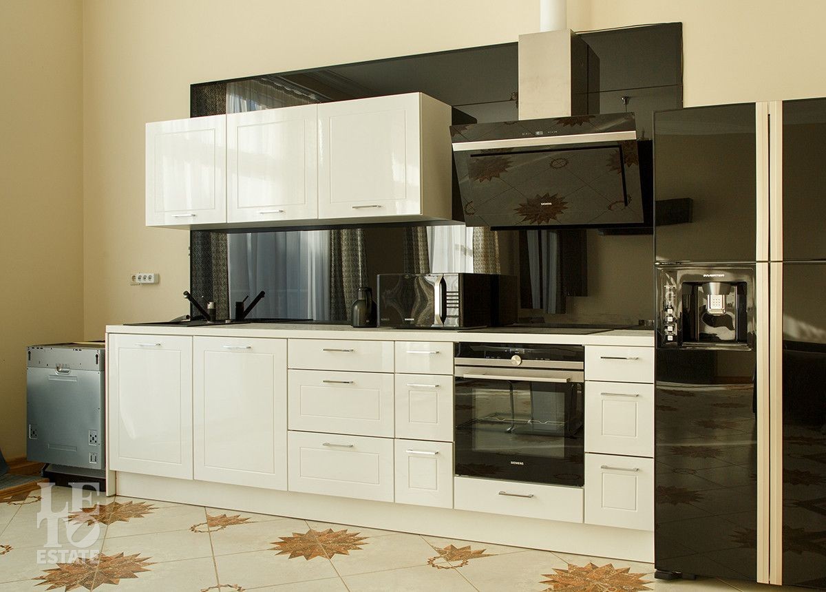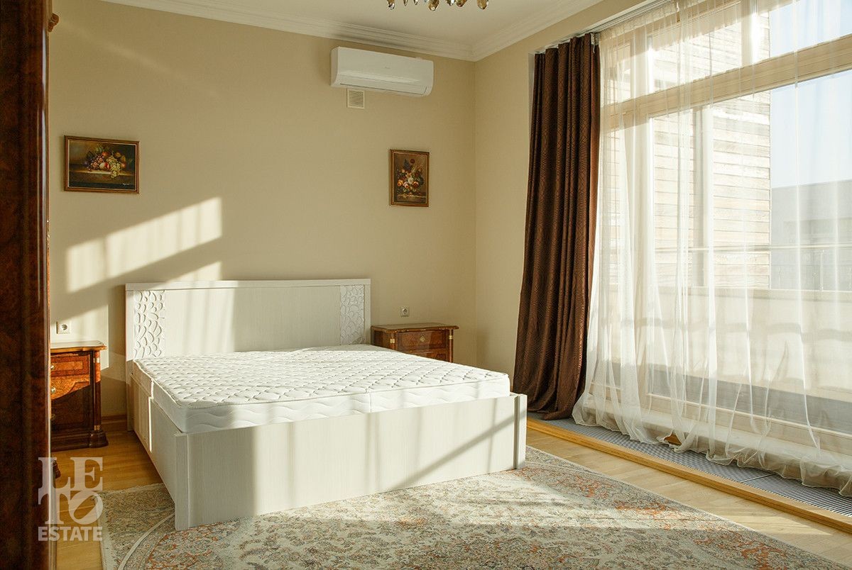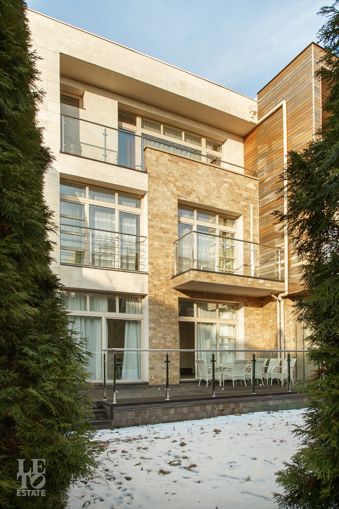 Таунхаус трехэтажный, построен в современном стиле по монолитно-каракасной технологии, внешние стены - кирпичные. В зоне кухни-столовой предусмотрен выход на террасу и участок. Участок обрамляют взрослые туи, образуя собой живую изгородь. Лестница отделана дубовой доской, ограждение кованое. В санузлах стены и пол отделаны керамогранитной плиткой. Пол в спальнях – дубовая паркетная доска. В каждой комнате есть выход на балкон. Есть гараж.