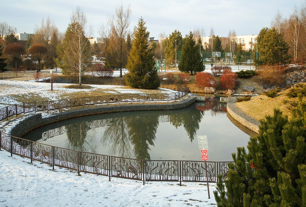 Внутри поселка раскинулся большой парк с благоустроенной красивой территорией, разделяющий поселок таунхаусов от жилого комплекса. В парковой зоне предусмотрены детские и спортивные площадки, площадка для выгула собак. По территории протекает река Беляна, которую облюбовали утки для выращивания своих птенцов. На холме в парке в зимнее время года управляющая компания организовывает горки для катания детей на тюбингах. В летнее время работает ресторан. На территории поселка со стороны комплекса представлена обширная коммерческая инфраструктура (косметология, кофейня, детский центр, стоматология, клининговые услуги).