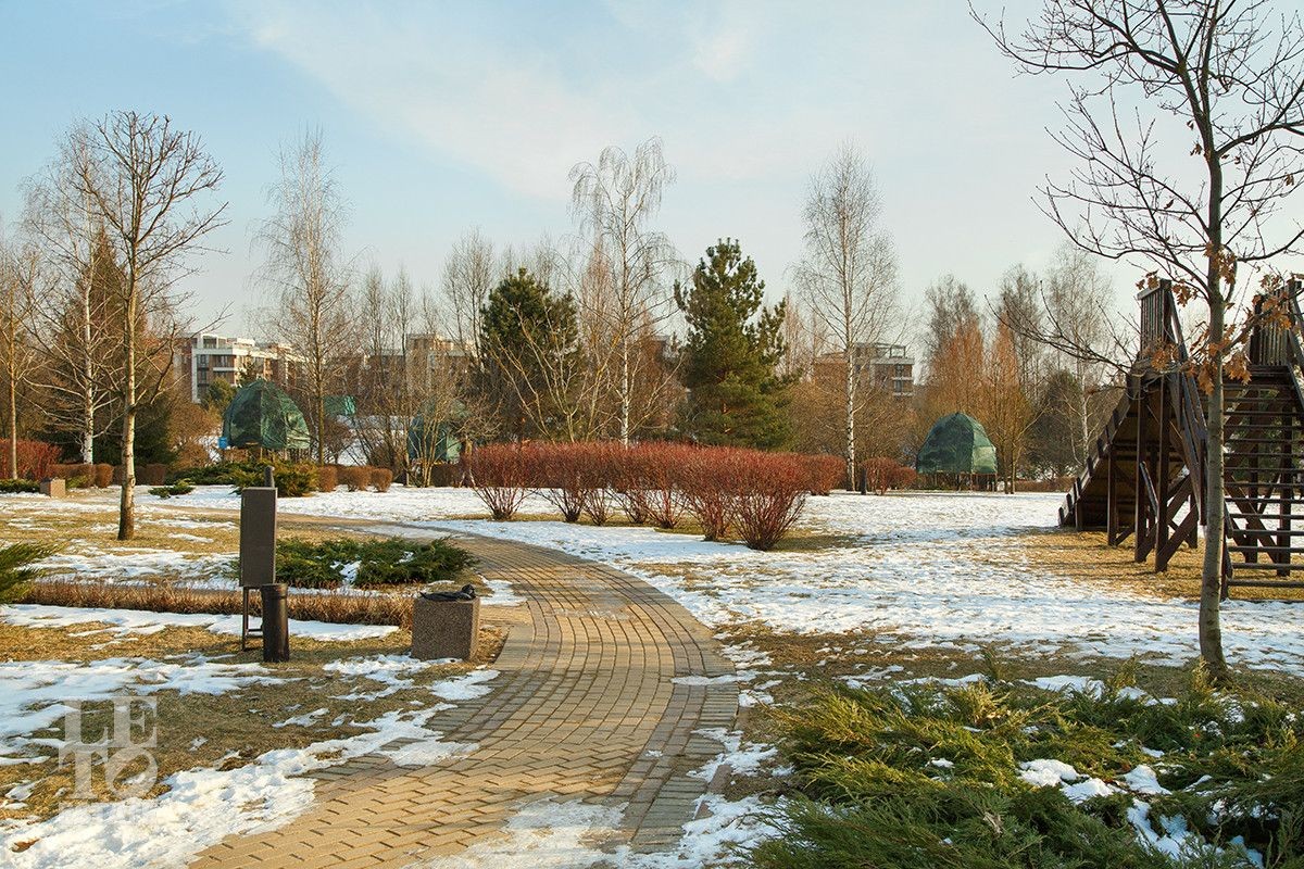Внутри поселка раскинулся большой парк с благоустроенной красивой территорией, разделяющий поселок таунхаусов от жилого комплекса. В парковой зоне предусмотрены детские и спортивные площадки, площадка для выгула собак. По территории протекает река Беляна, которую облюбовали утки для выращивания своих птенцов. На холме в парке в зимнее время года управляющая компания организовывает горки для катания детей на тюбингах. В летнее время работает ресторан. На территории поселка со стороны комплекса представлена обширная коммерческая инфраструктура (косметология, кофейня, детский центр, стоматология, клининговые услуги).