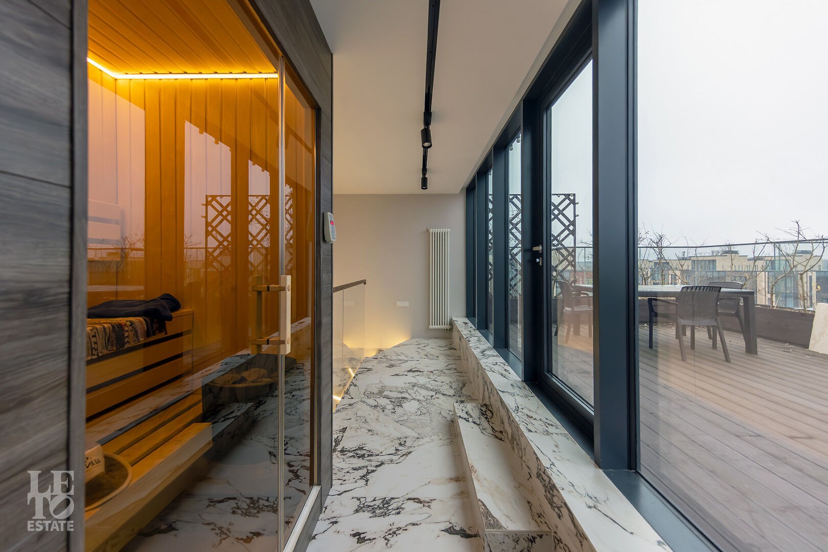 Четвертый этаж: сауна, санузел, душ, выход на эксплуатируемую кровлю.