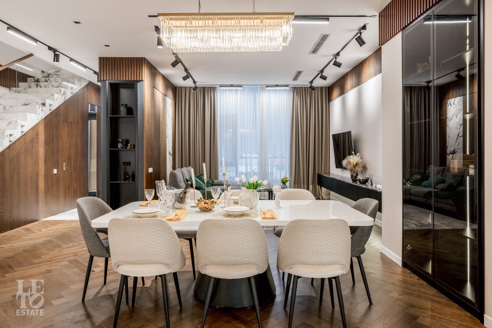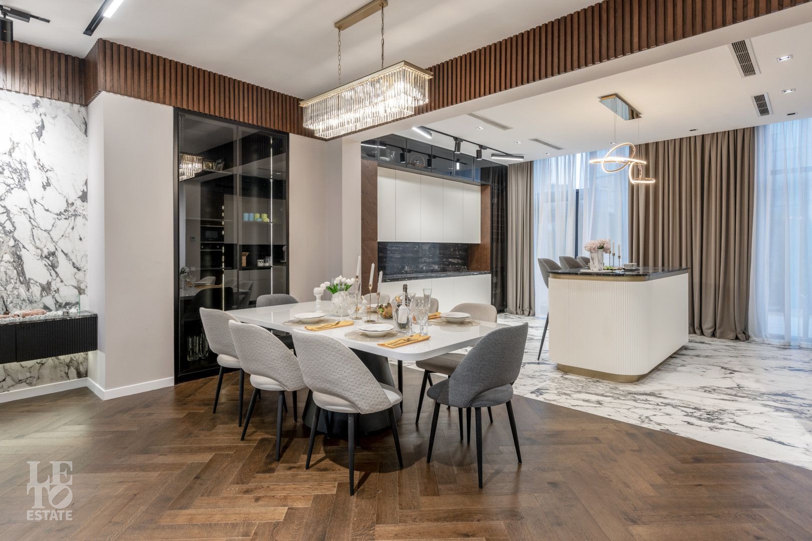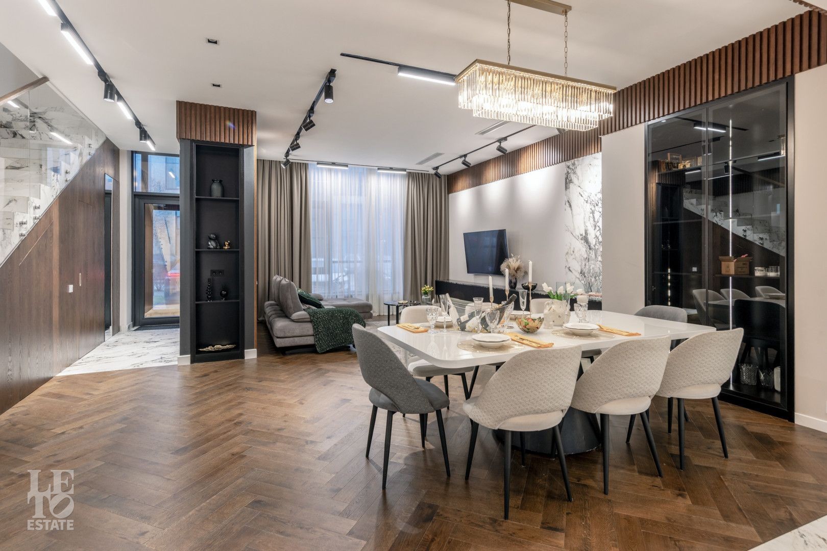 Таунхаус оформлен по дизайн-проекту с использованием премиальных материалов и полностью меблирован. Таунхаус спроектирован с особым вниманием к удобству для жизни большой семьи — каждый уровень продуман так, чтобы обеспечить максимум комфорта и приватности.