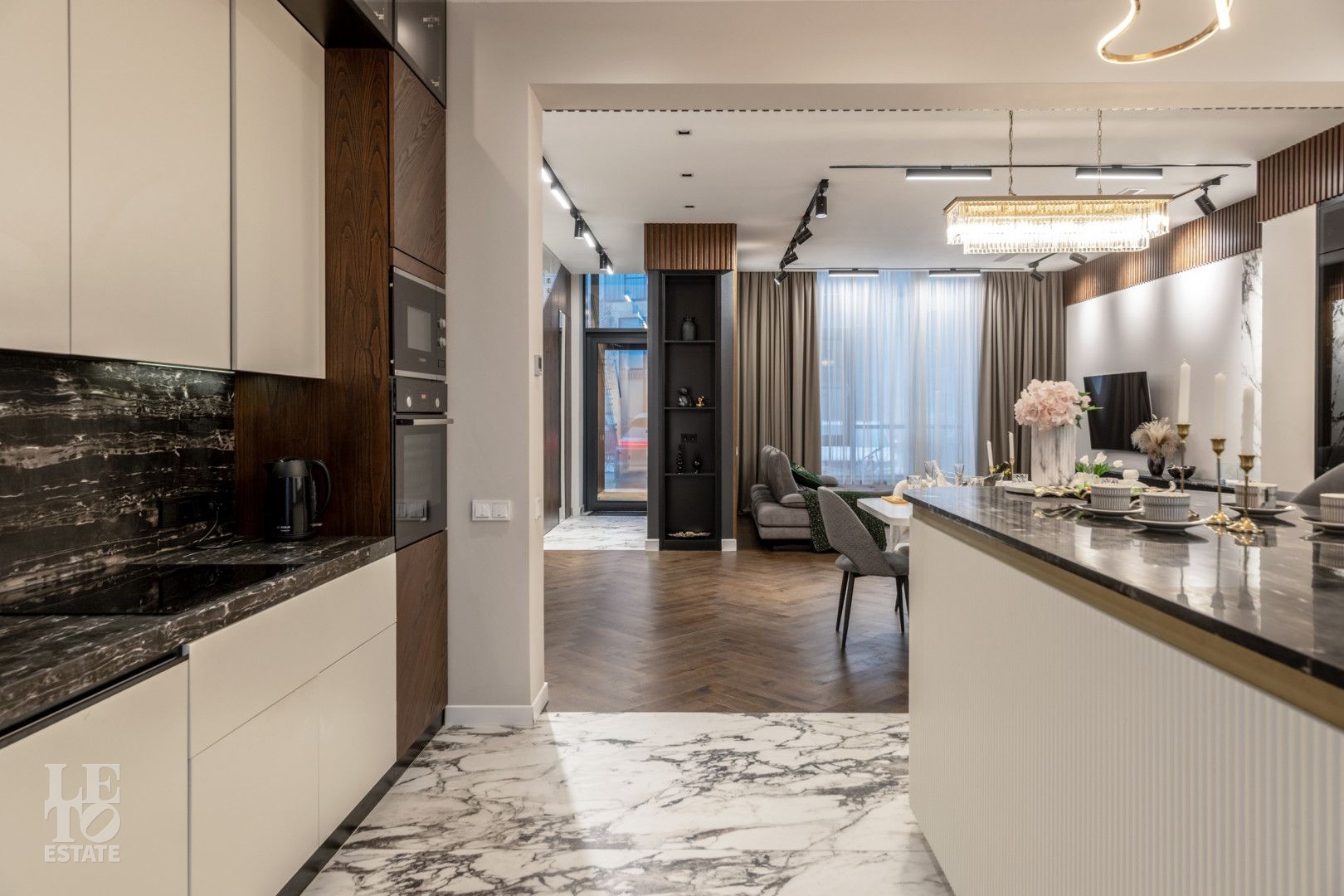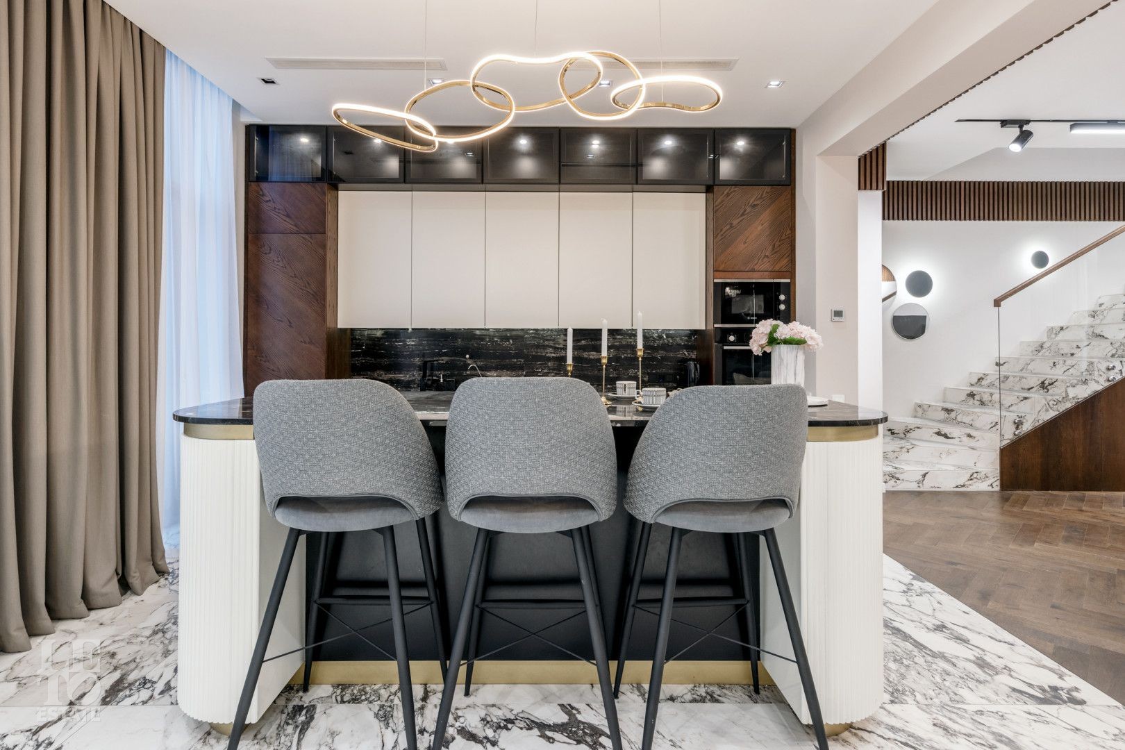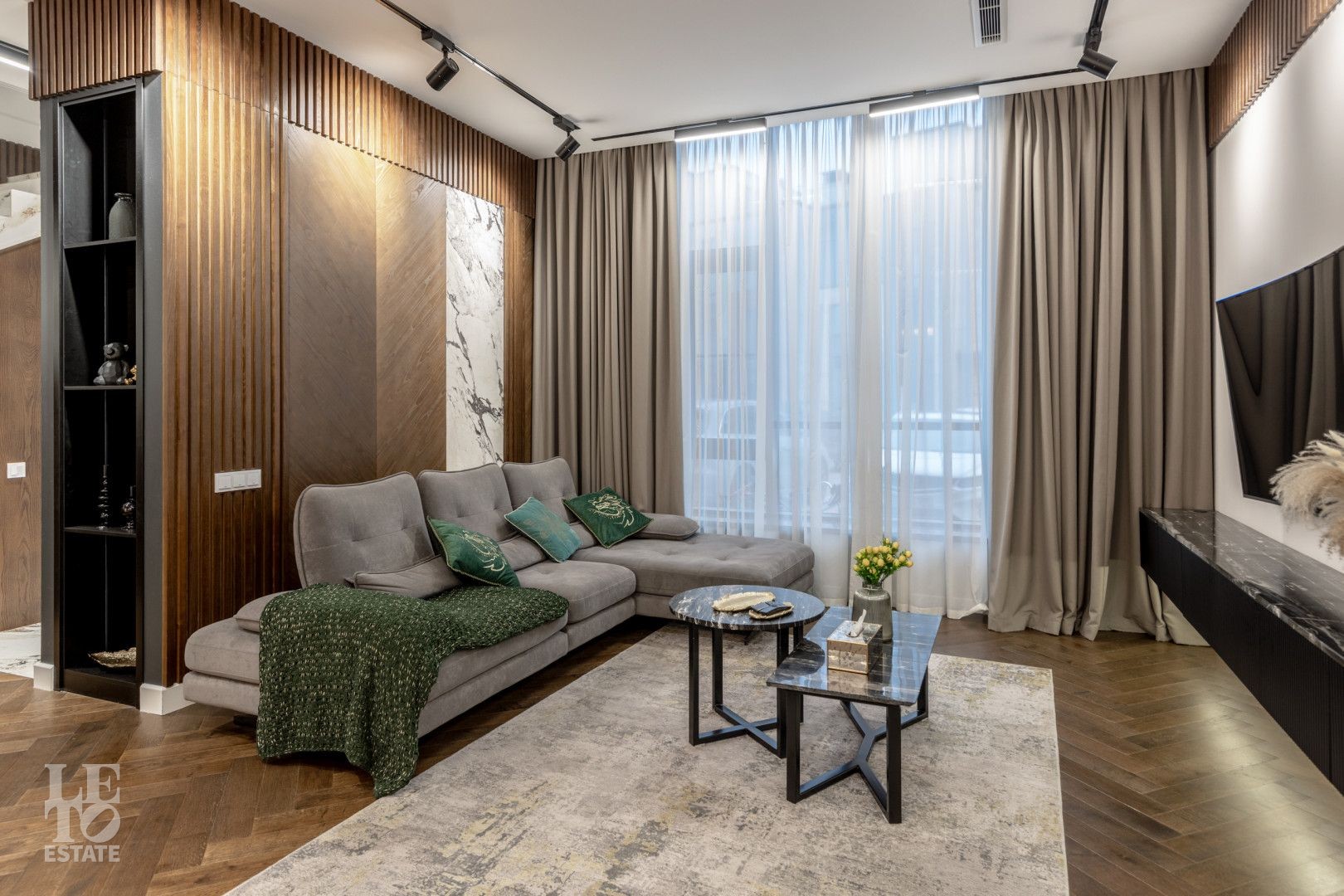 Таунхаус оформлен по дизайн-проекту с использованием премиальных материалов и полностью меблирован. Таунхаус спроектирован с особым вниманием к удобству для жизни большой семьи — каждый уровень продуман так, чтобы обеспечить максимум комфорта и приватности.