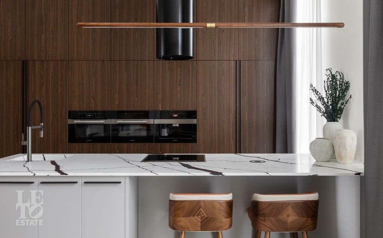Встроенная бытовая техника - Miele, холодильник и морозильник - Libherr, стиральная и сушильная машины - Asko.