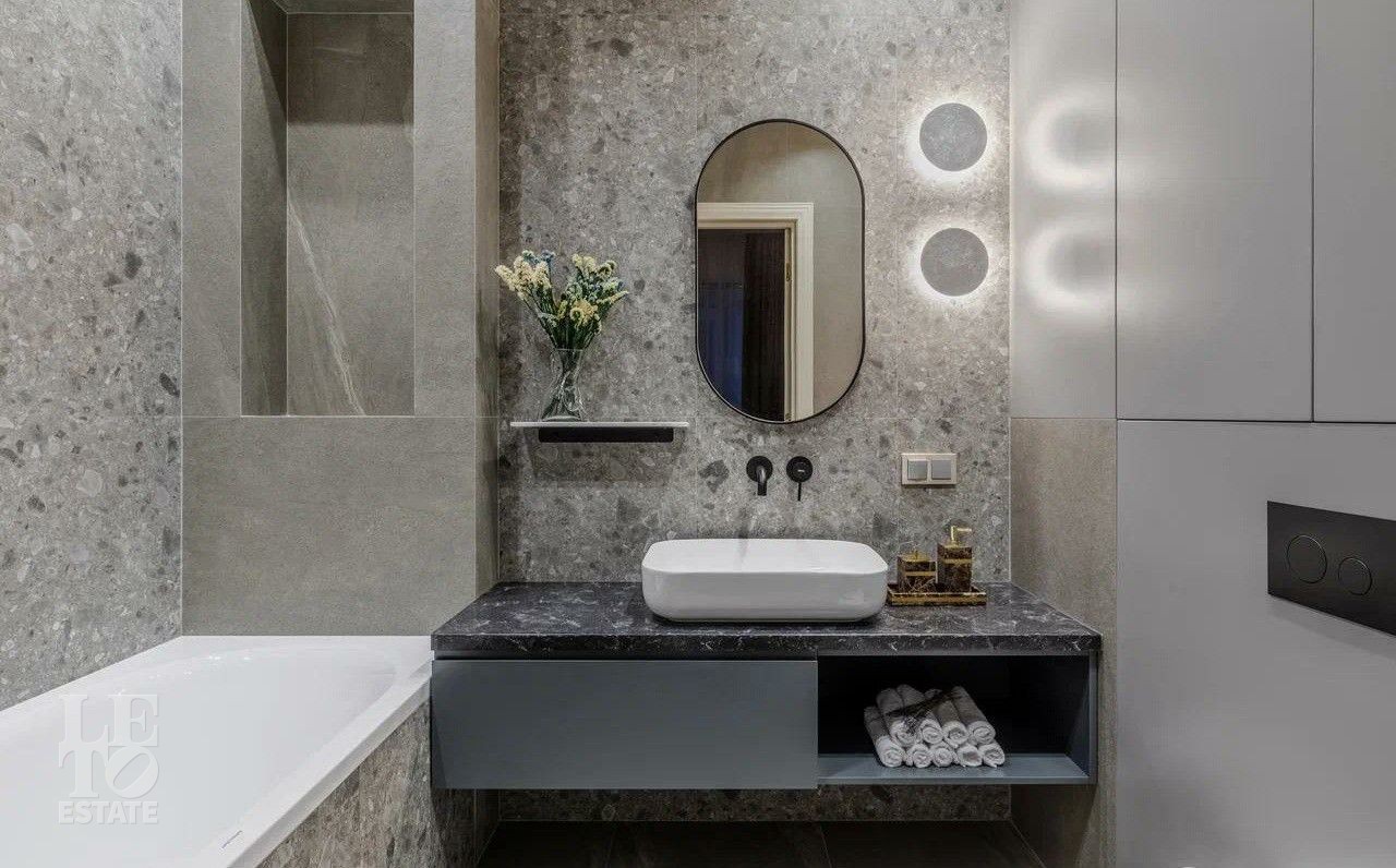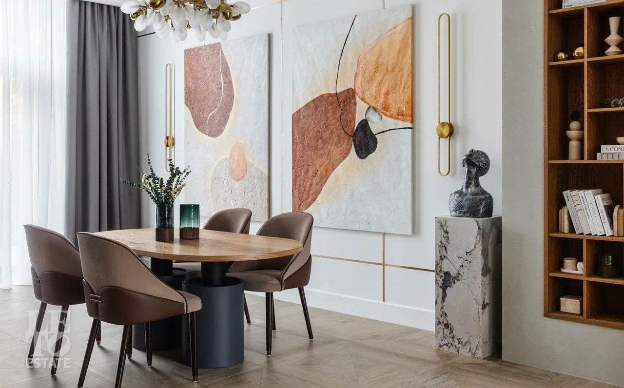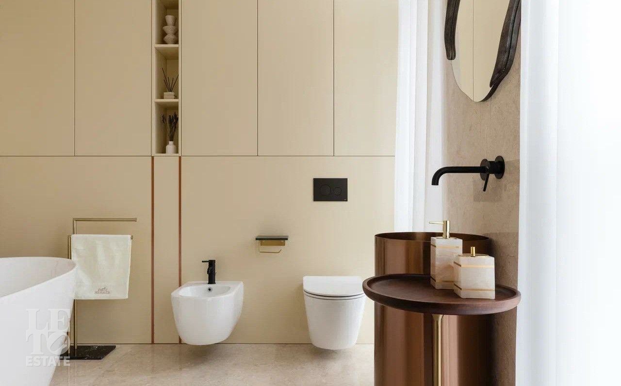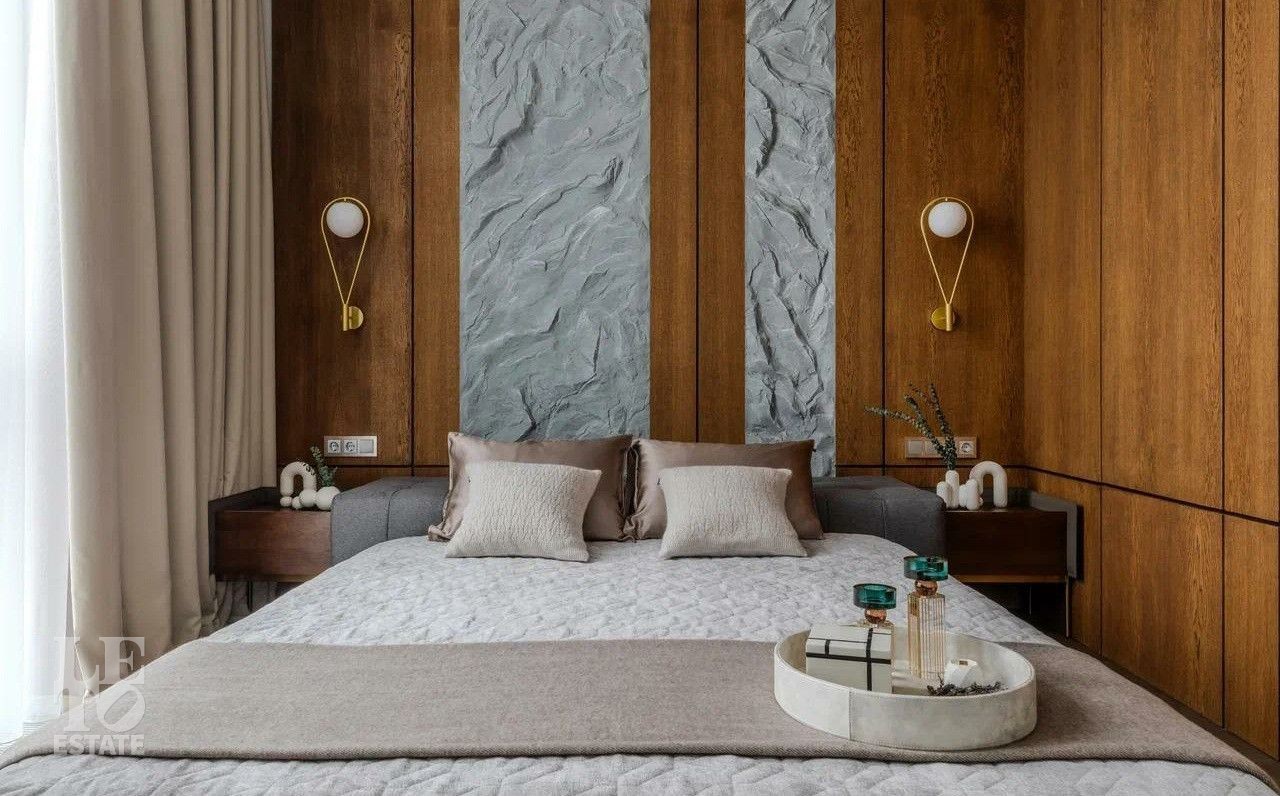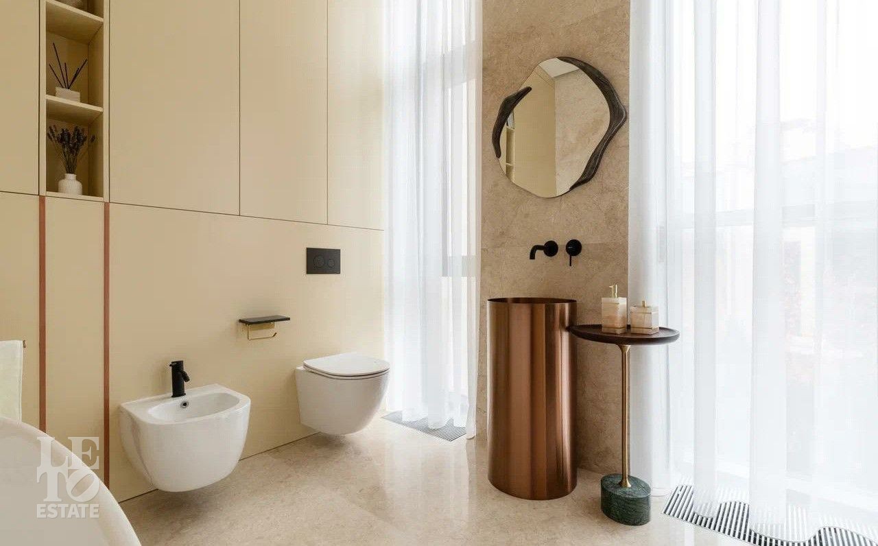 В отделке использовались премиальные отделочные материалы: мрамор, дровяной камин облицован сланцем, столешница сделана из кварца, весь керамогранит в доме Parselanosa Group, отделка стен из ценных пород дерева.