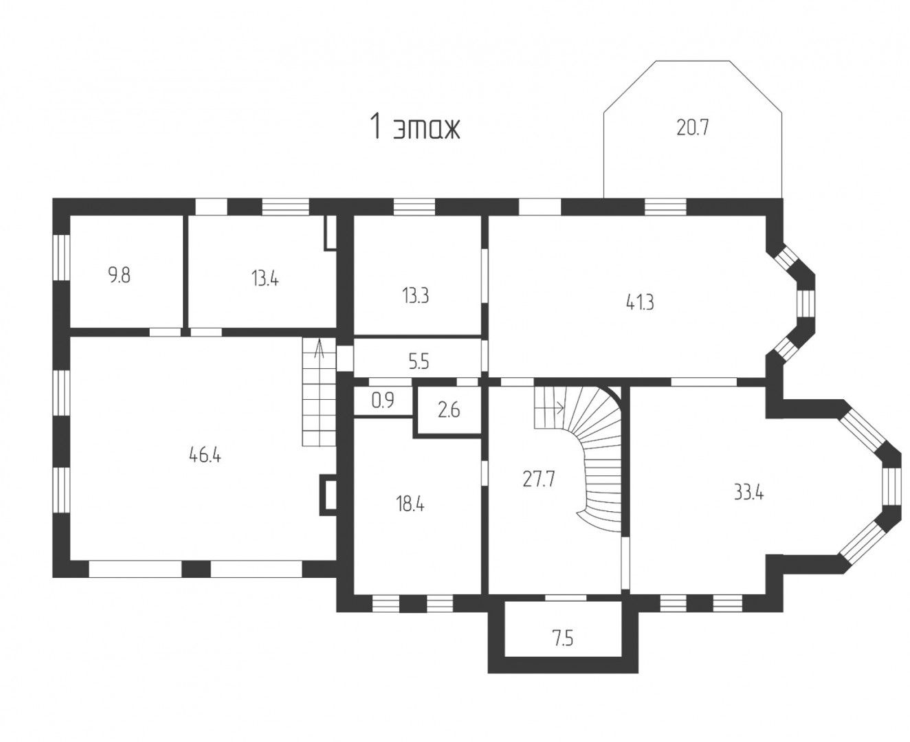 Первый этаж: холл, две гардеробные, кабинет, санузел, кухня, зимний сад, столовая, гостиная, гараж на 2 м/м, котельная;