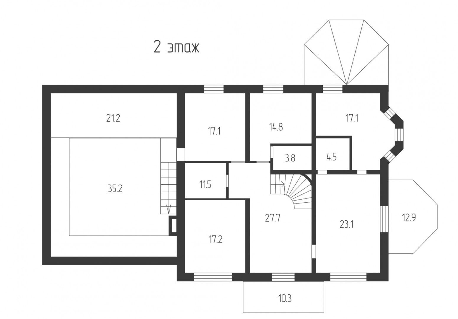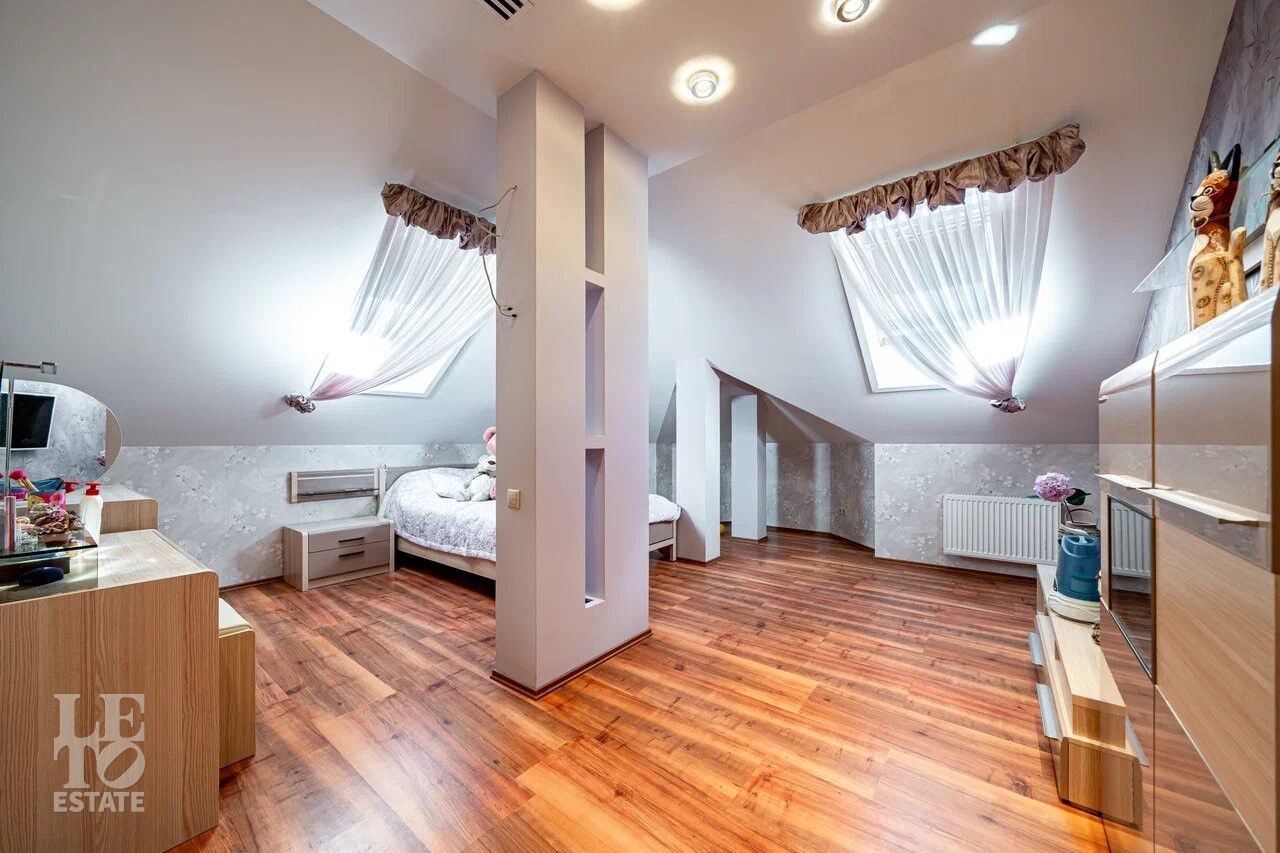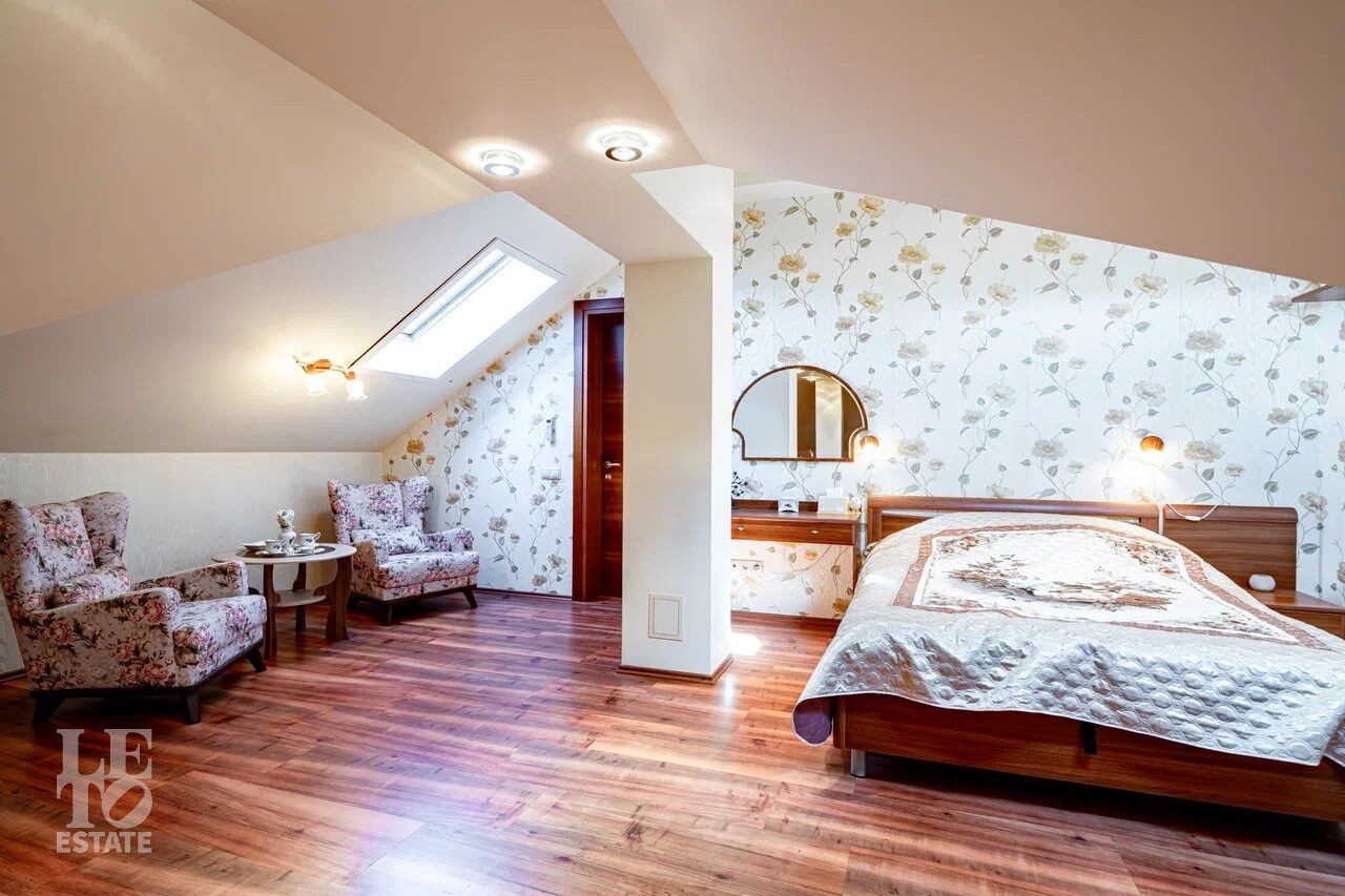 Мансарда: две спальни, гардеробная, санузел с душевой и ванной.