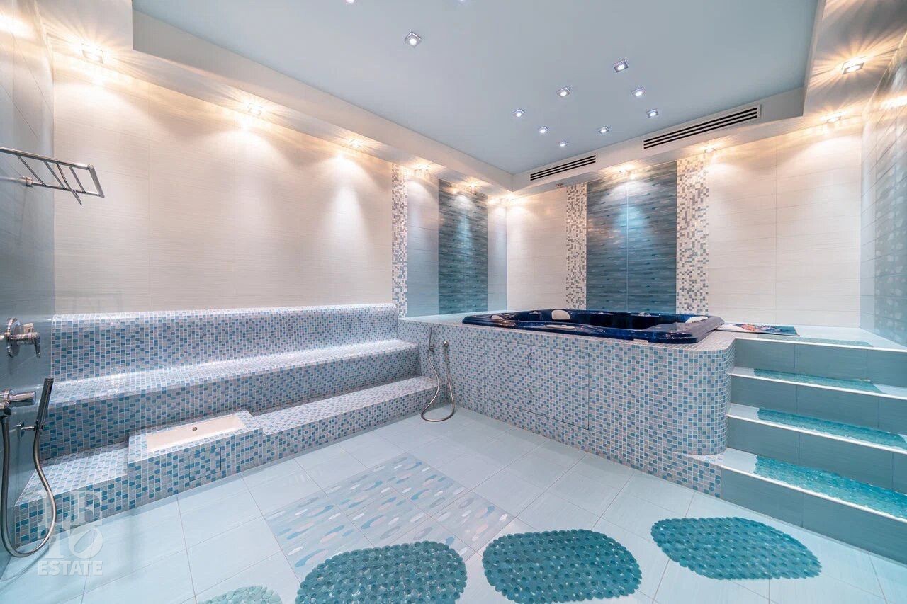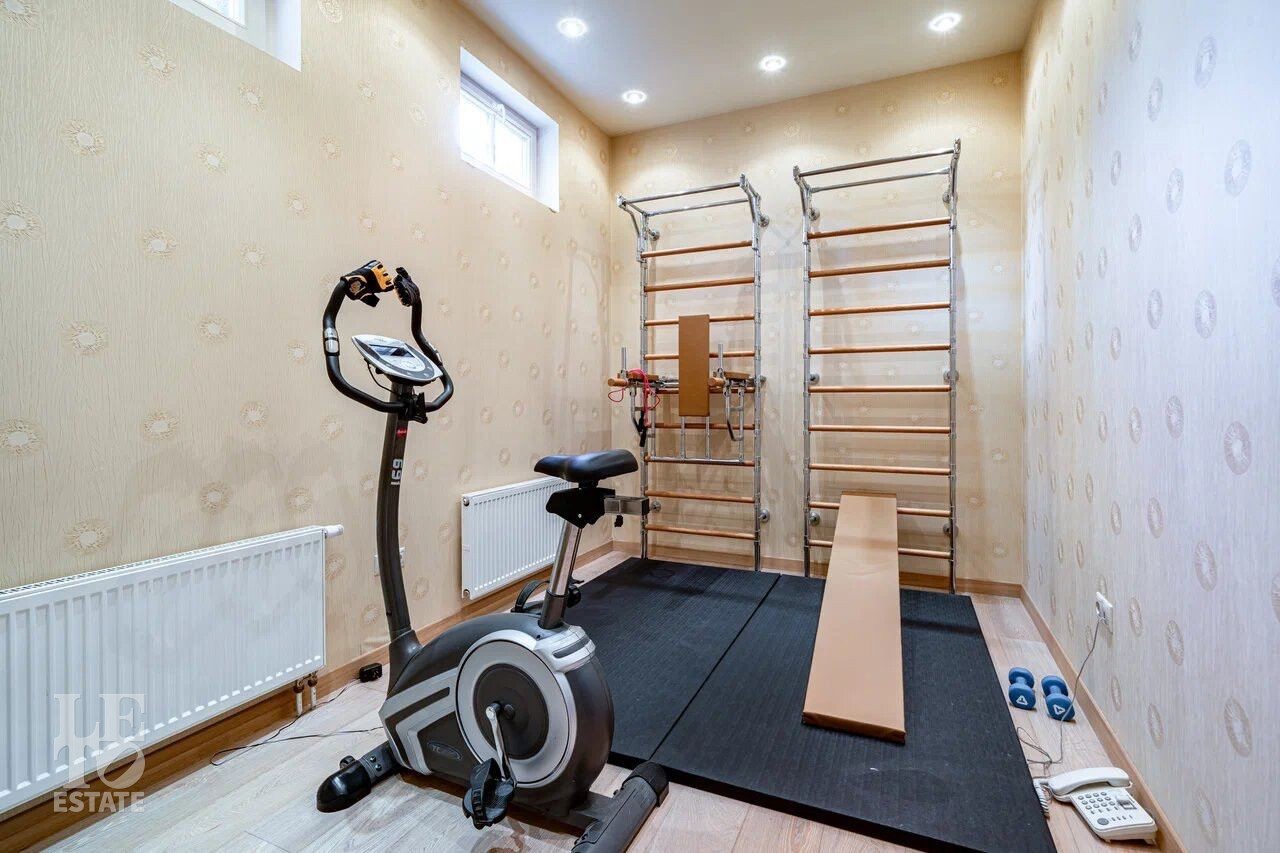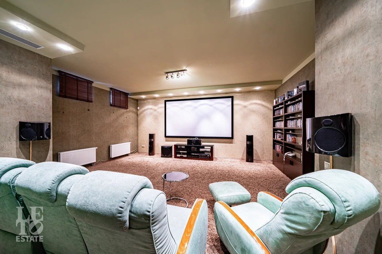 Цокольный этаж: джакузи, сауна, санузел, душевая, бильярд, бар, кинотеатр, постирочная, спортзал, санузел с душем;
