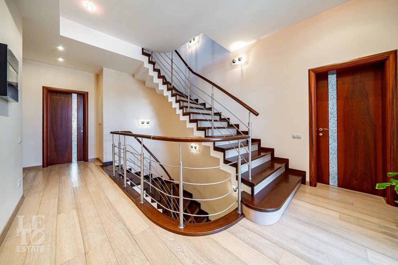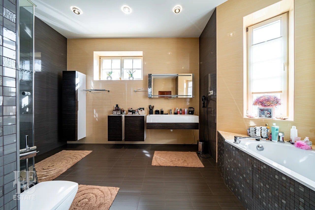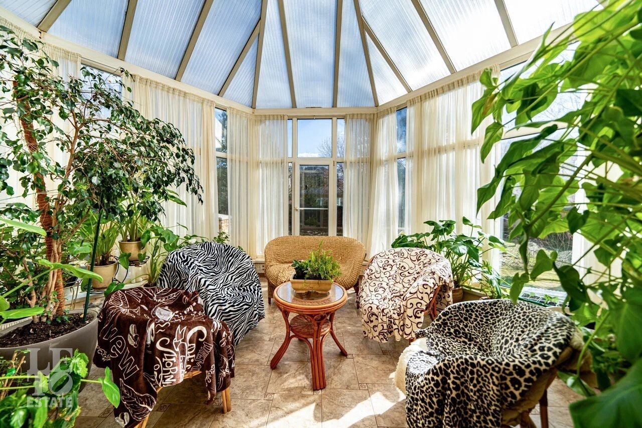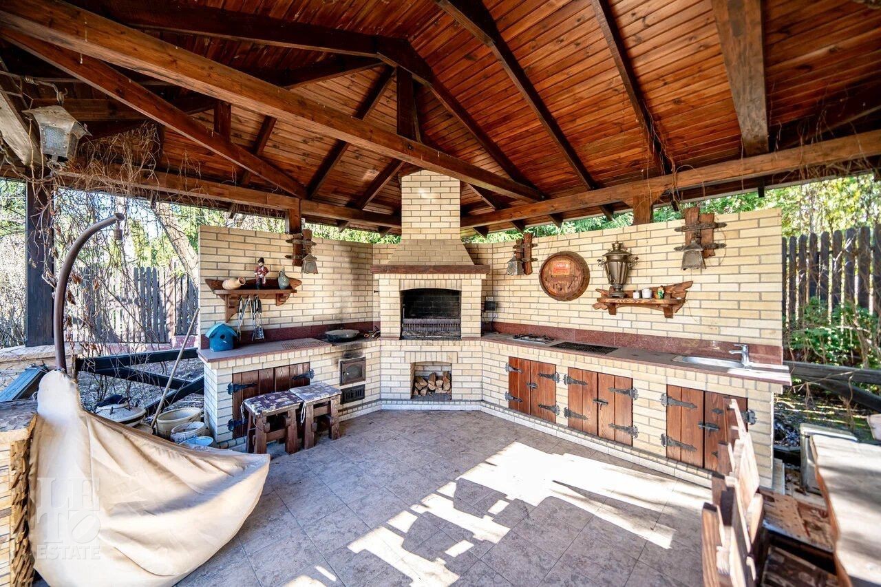 Дом полностью обустроен мебелью и техникой и уже готов к проживанию. На участке площадью 21 сотка имеется декоративное озеро и зона отдыха с мангалом и газовой плитой. Вокруг дома выполнен дренаж.