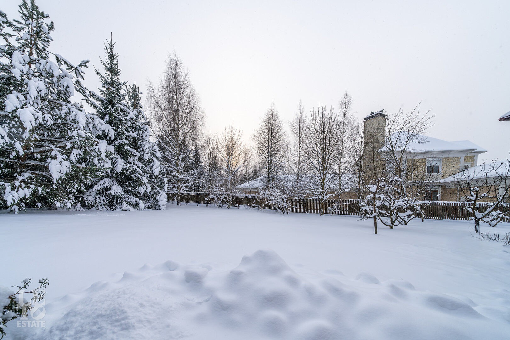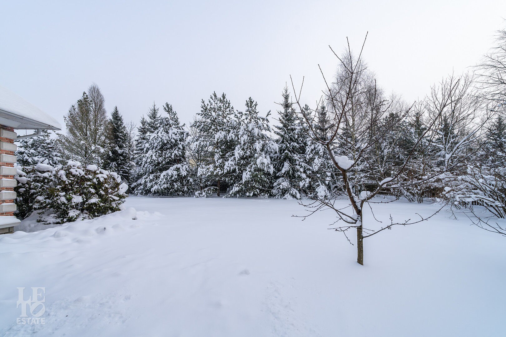 На участке выполнен ландшафтный дизайн, по периметру растут взрослые деревья.