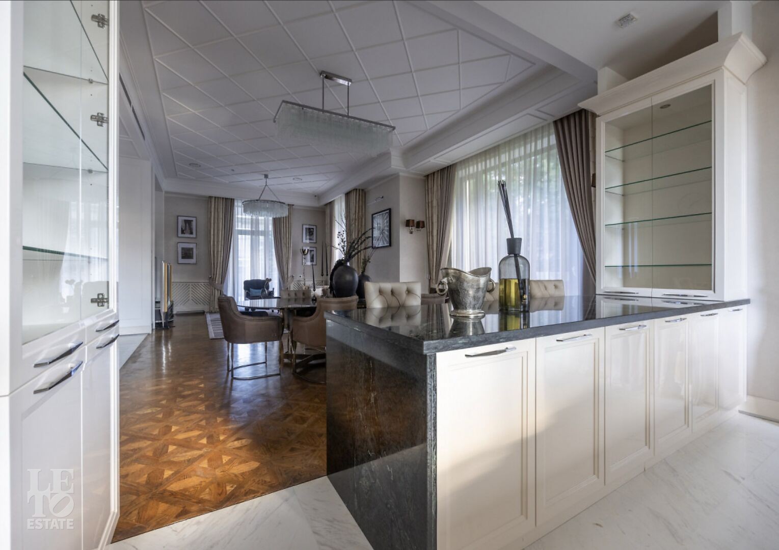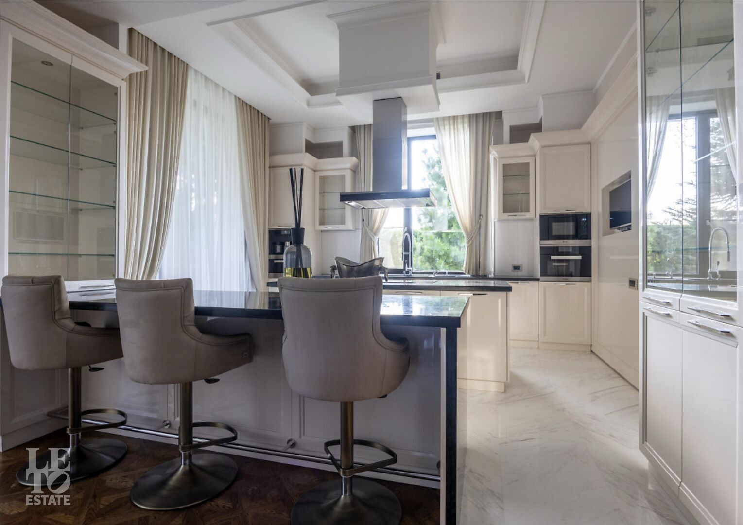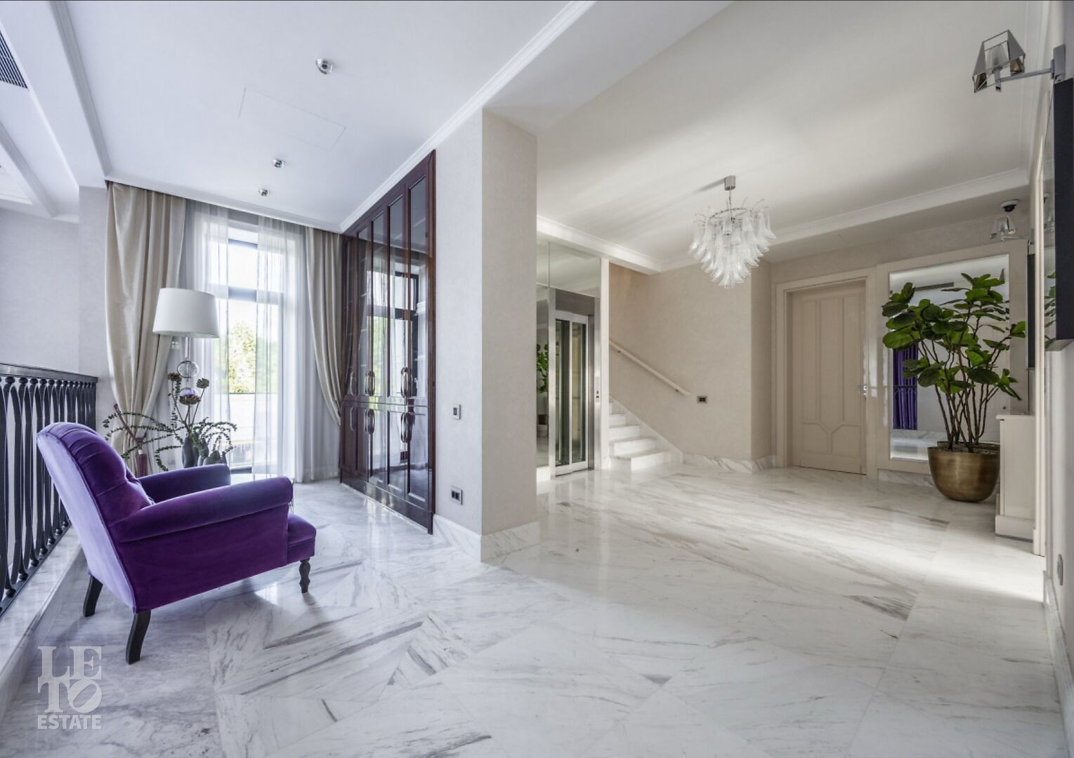 Второй этаж: библиотека, 2 спальни, с/у, спальня с гардеробной и с/у, лифт.