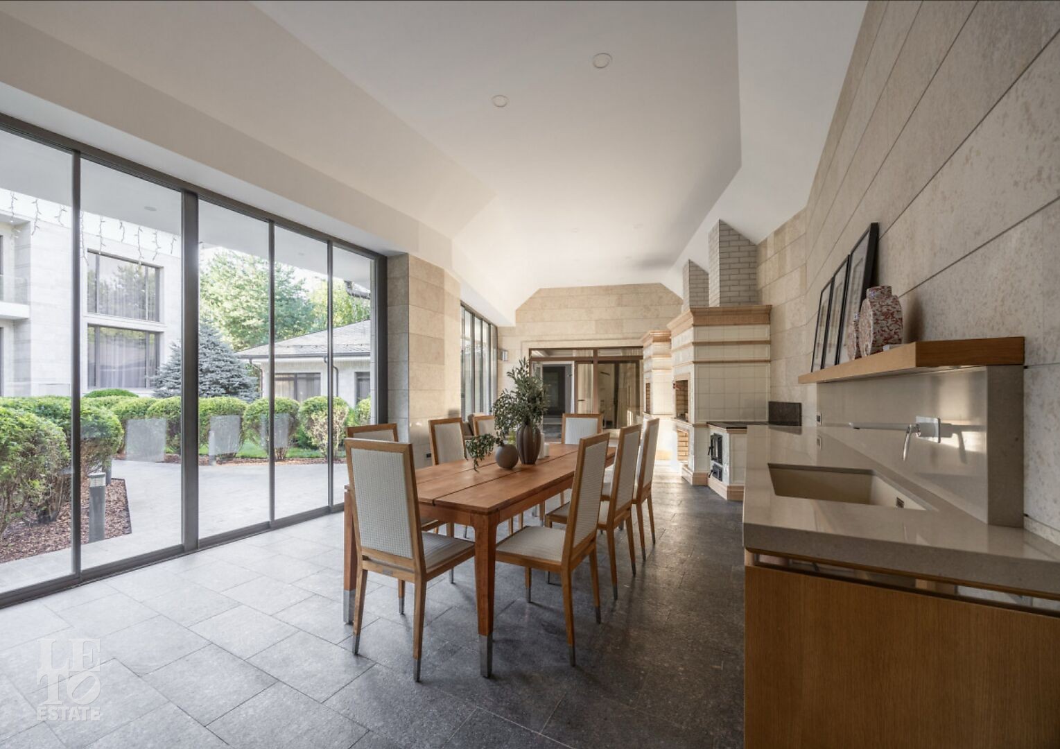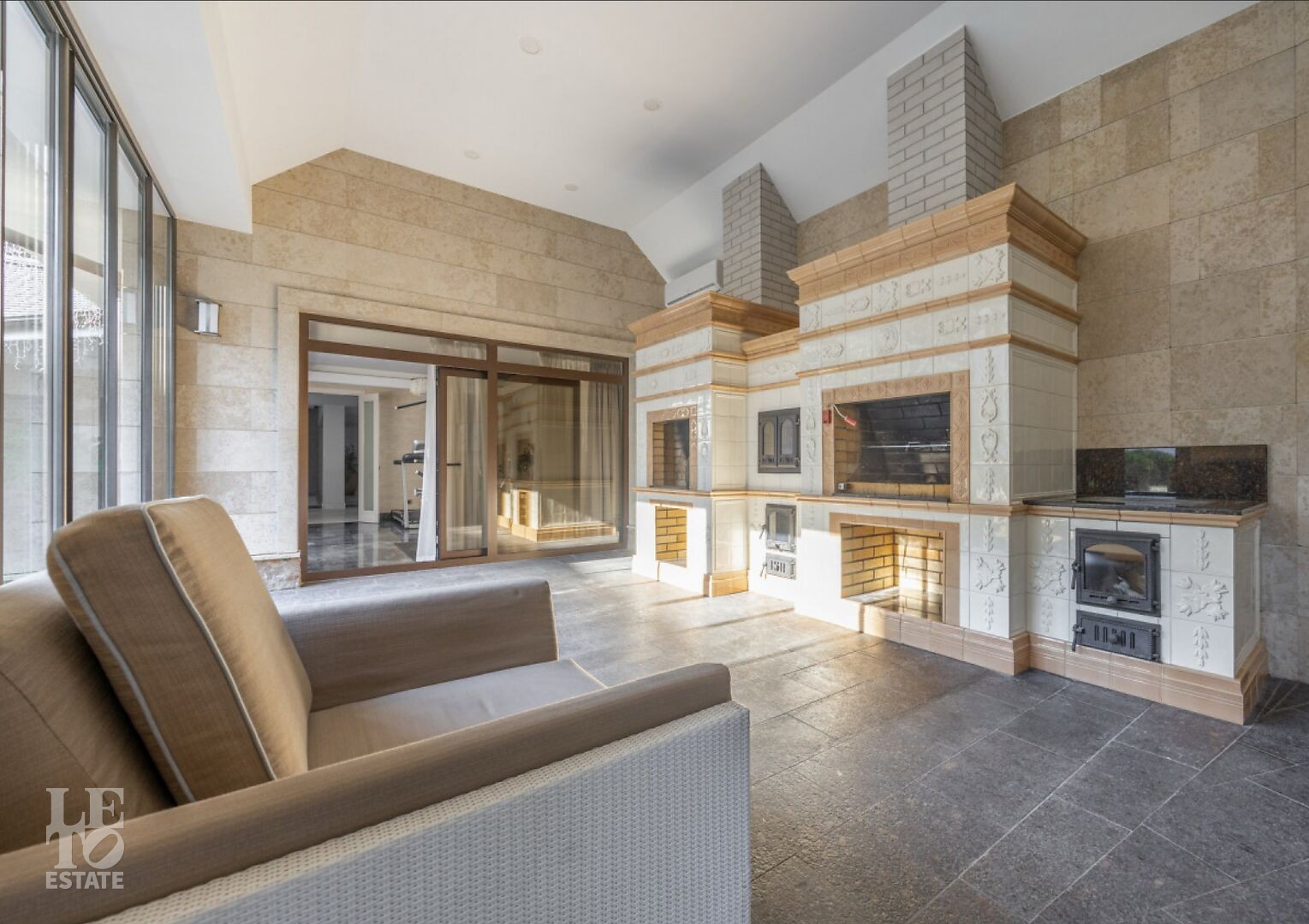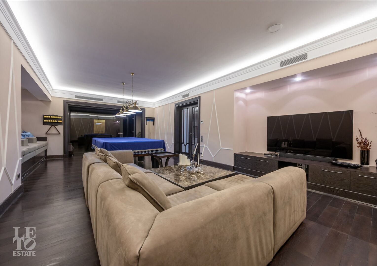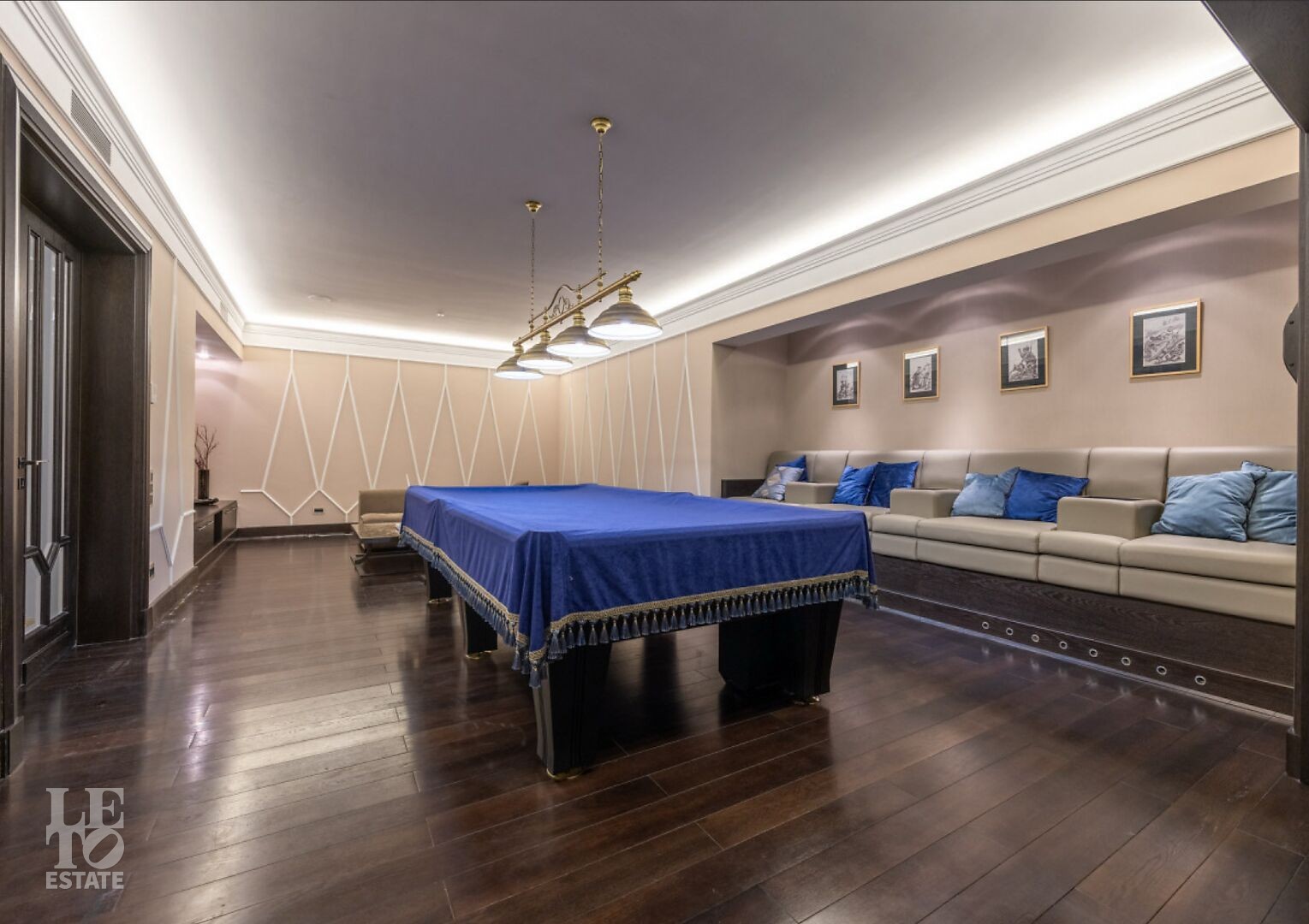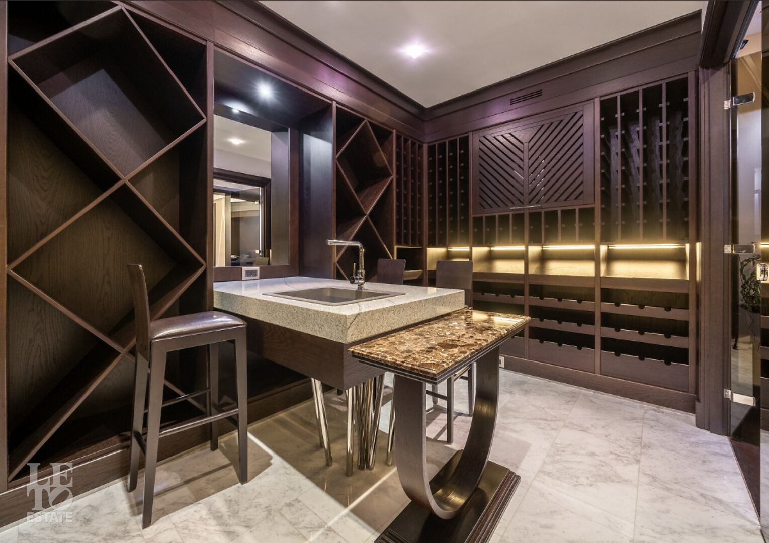 Цокольный этаж: бильярдная, винная комната, постирочная, гардеробная.