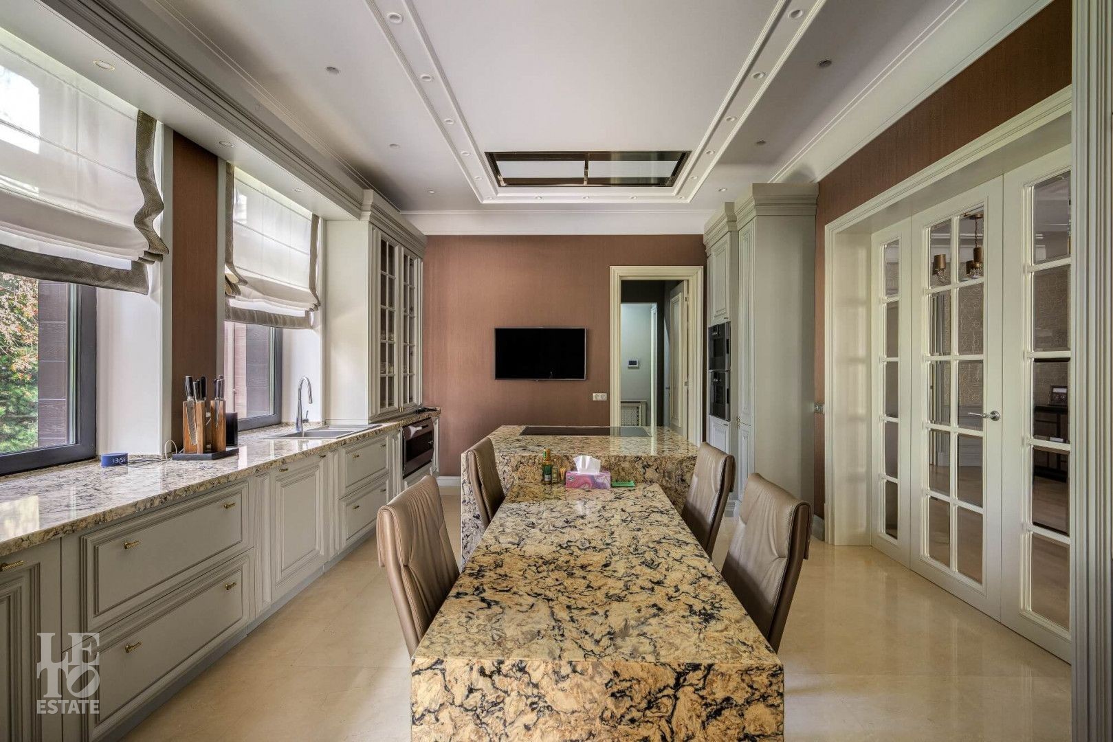 Особенности: функциональная просторная планировка, высокие потолки, большие помещения, светлый интерьер за счет обилия окон, дорогие натуральные материалы в отделке, мебель ведущих фабрик Италии, сантехника и бытовая техника исключительно от лучших мировых брендов. Дом оборудован приточно-вытяжной системой вентиляции, кондиционированием, много теплых полов. Надежный конструктив: ж/б монолит и кирпич, окна Alutech, кровля – из меди.