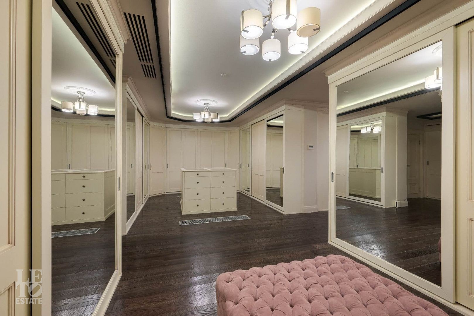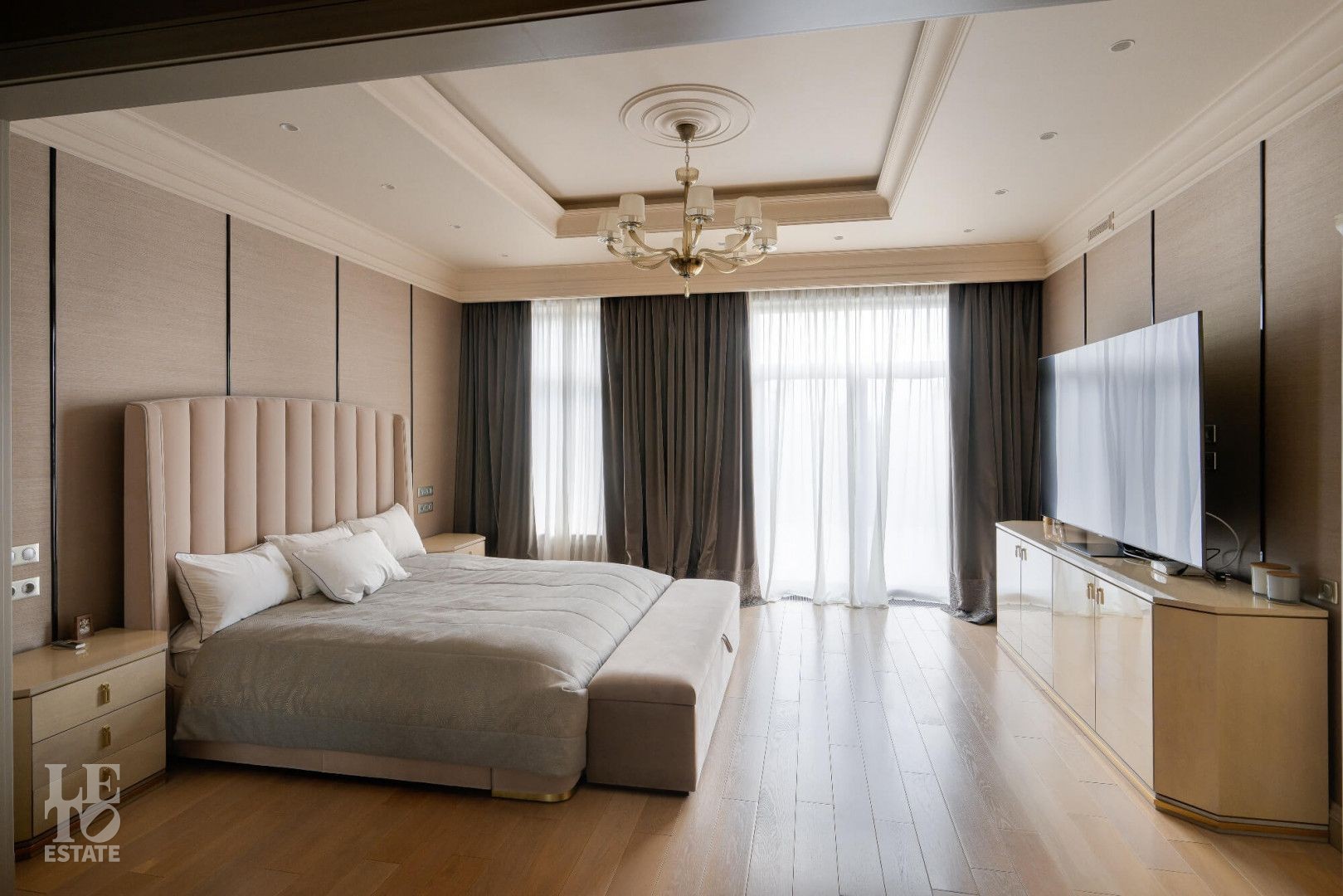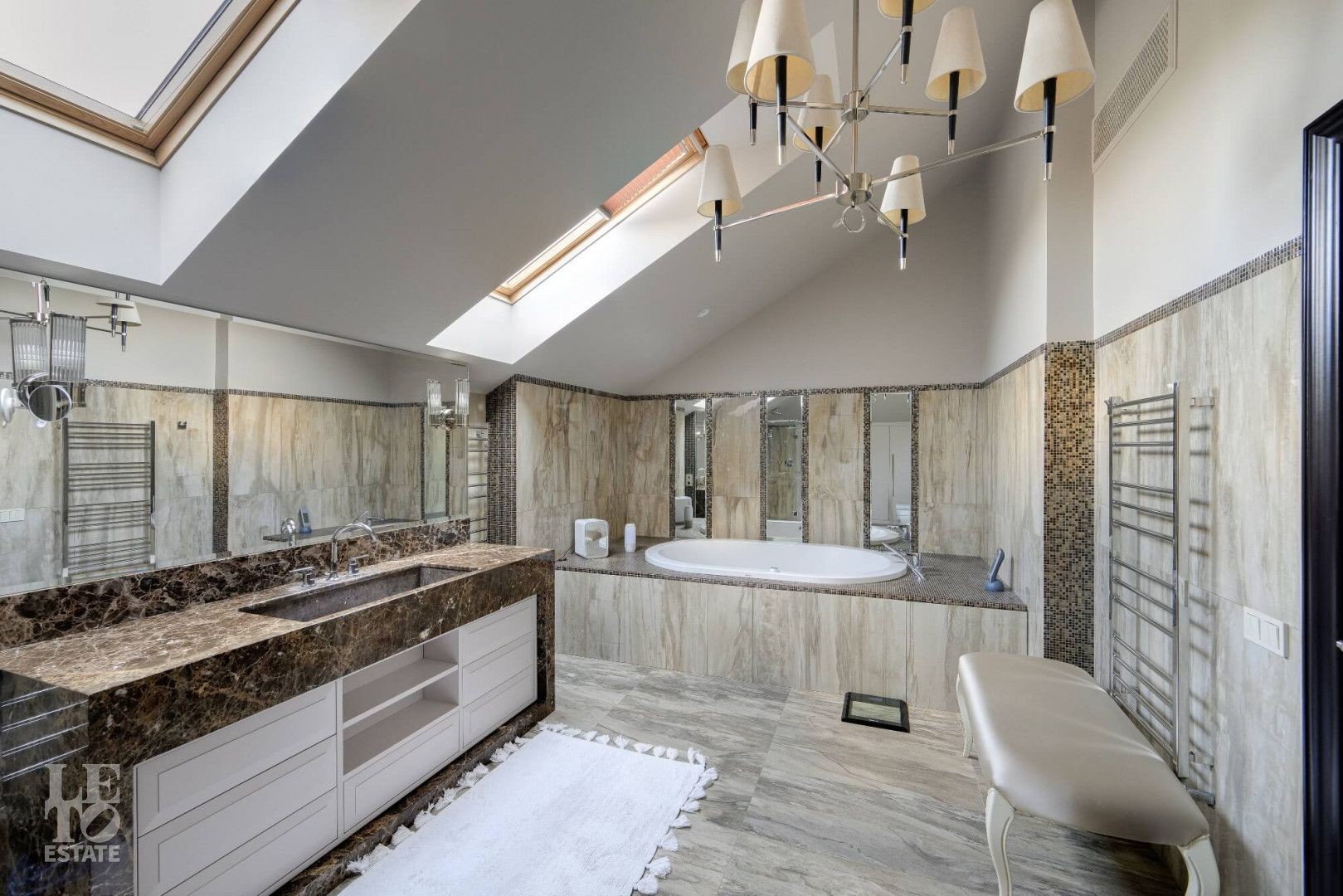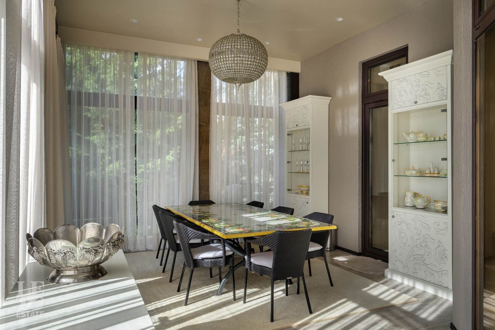 Интерьер выполнен в современном классическом стиле с искусно подобранными с душой предметами интерьера: стильными люстрами и светильниками, зеркалами, эксклюзивными аксессуарами.