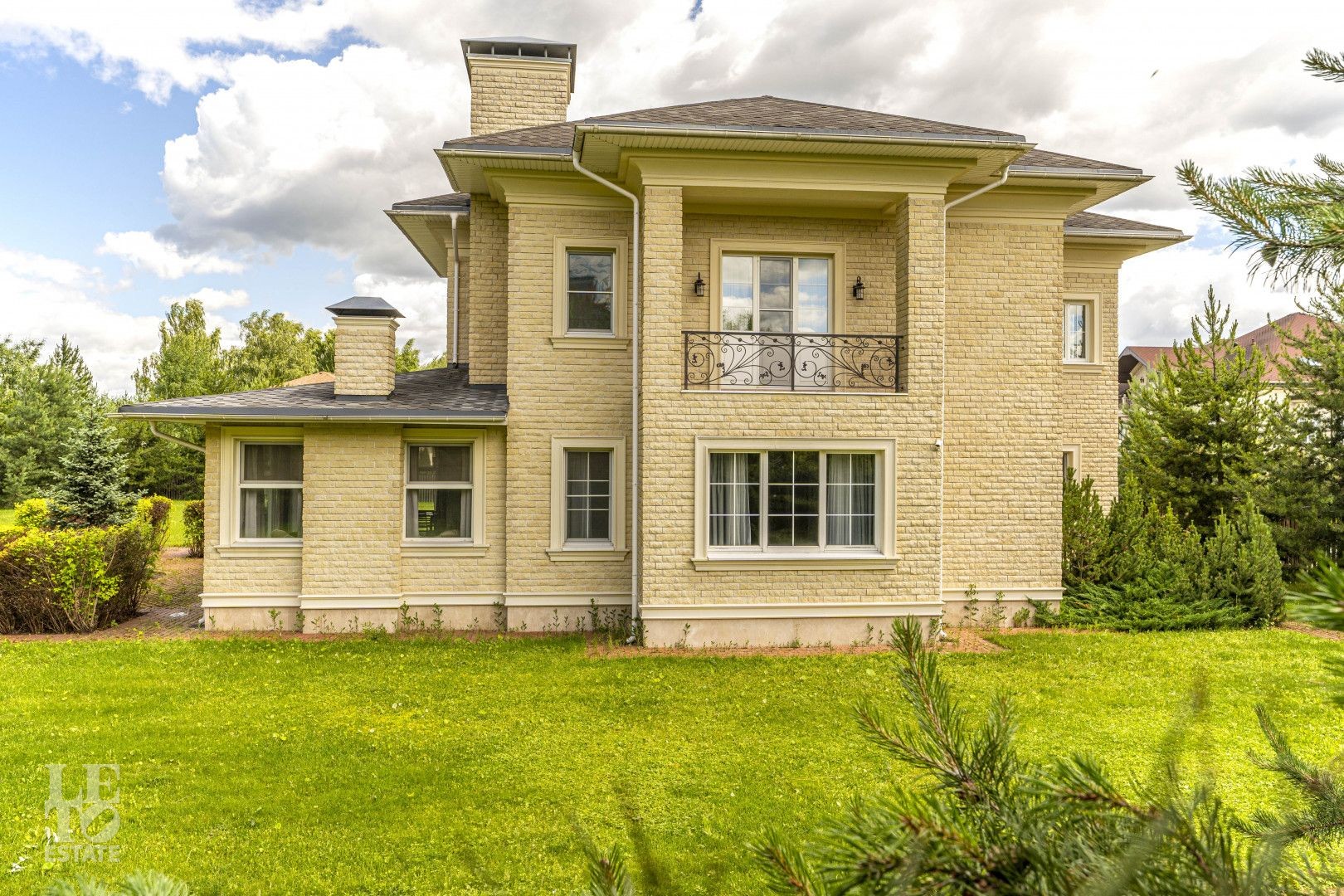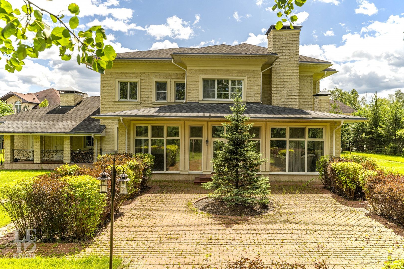 Дом построен из кирпича, монолитные перекрытия и полностью готов для постоянного проживания, установлена дорогостоящая сантехника, использованы эксклюзивные материалы. Лестница выполнена с элементами ковки. Техника и мебель от ведущих производителей. В гостиной дома установлен камин.
