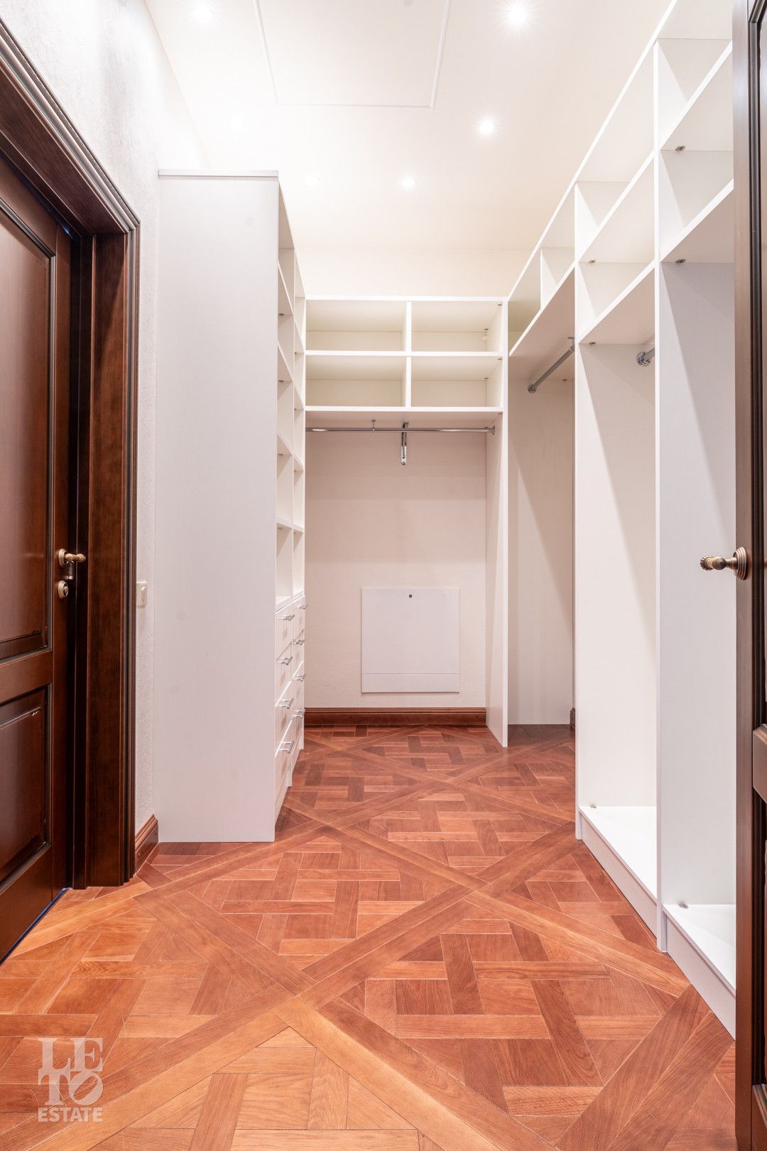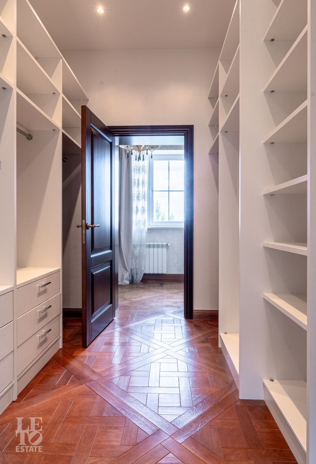 Второй этаж: холл, мастер-спальня с гардеробной и санузлом, две спальни с санузлом и гардеробными, детская (кабинет).