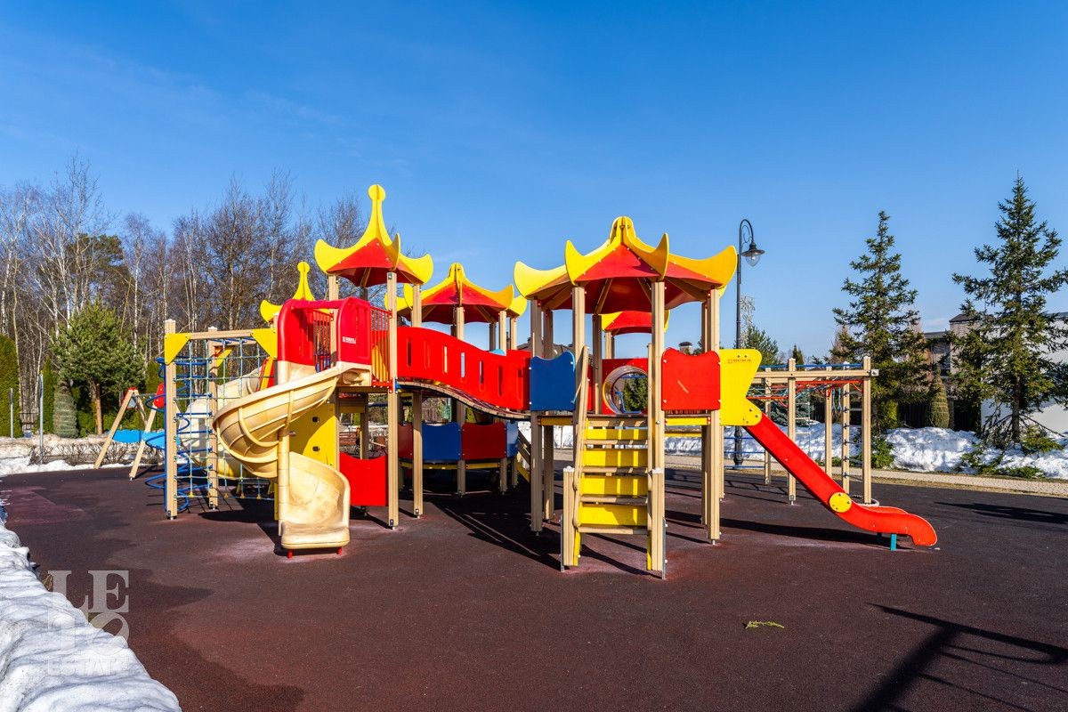 Внутри поселка созданы все условия для комфортного проживания: асфальтированные подъездные дороги, широкие улицы с тротуарами и освещением, детские и спортивные площадки, зелёные общественные зоны, места для выгула собак, гостевые парковки.