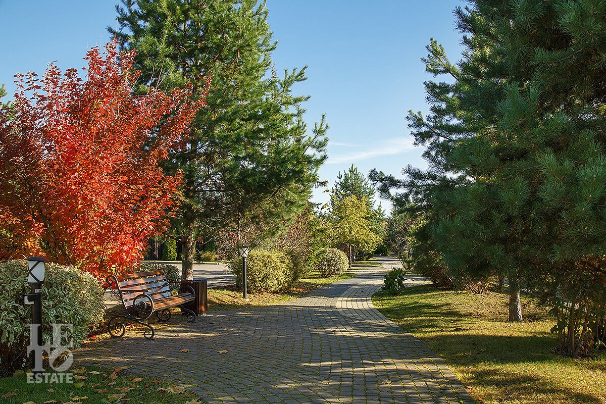 Поселок построен в единой концепции, и на его территории 110 Га гармонично сочетаются индивидуальные коттеджи, таунхаусы и многоквартирные дома.