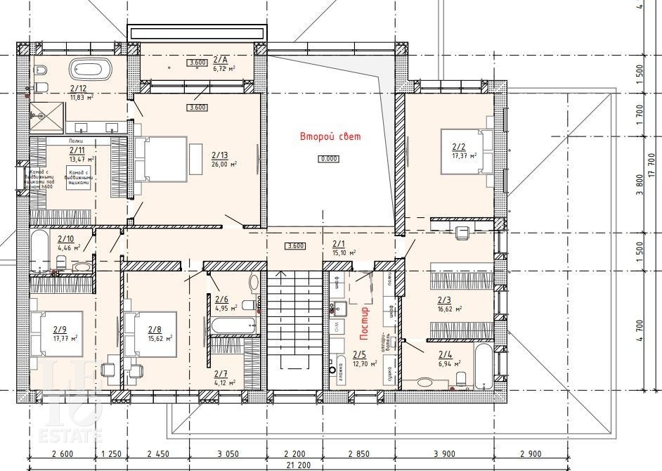 План 2 этажа: постирочная, мастерспальня, три спальни с с\у и гардеробными.