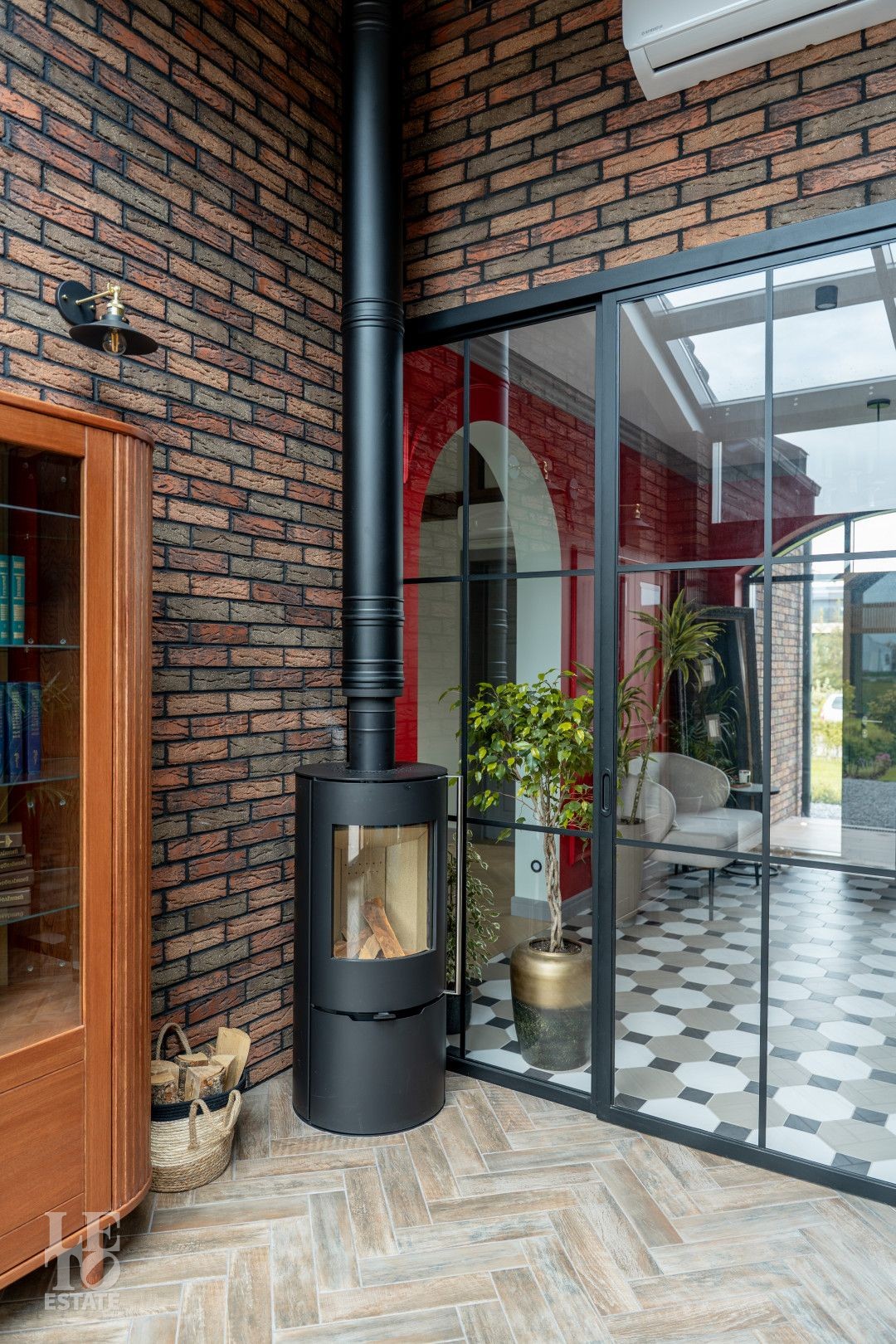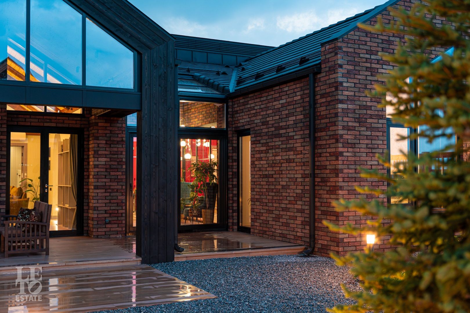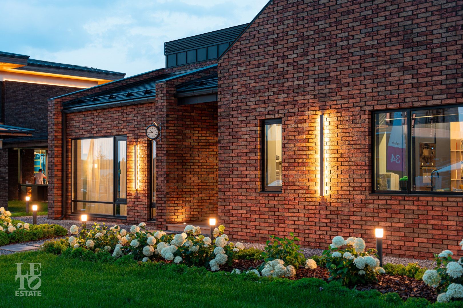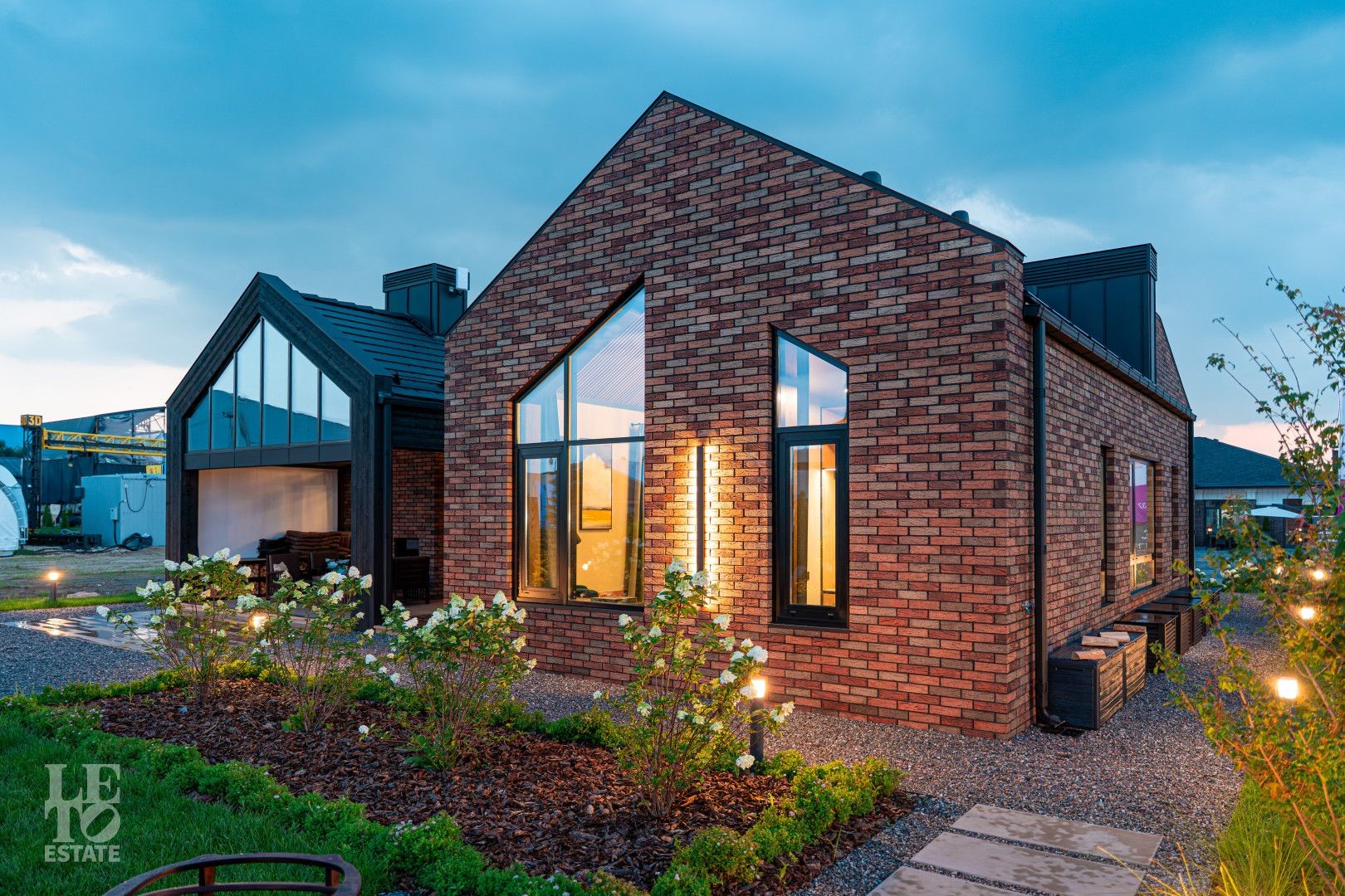 Архитектурный шедевр, в котором хочется жить. Фасад дома, одетый в уникальную кладку из трех оттенков кирпича Faber-Jar, играет объемом и глубиной, создавая неповторимый образ английского стиля. Его визитная карточка — грандиозный витраж и панорамное остекление, которое стирает границу между изысканным интерьером и природой вашего сада.